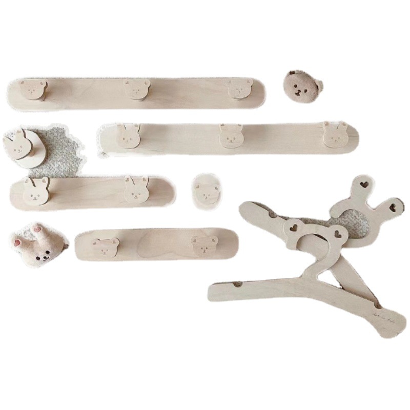 Korean Style Bear Rabbit Clothes Hanger Children's Coat Rack Solid Wood Baby Clothes Hanger Photography Props Decorative Clothes Hanger