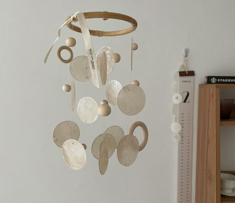 Korean Style Natural Shell Wind Chime Pendant Wooden Beads Wooden Circle Simple Wall Hanging B&BSoft Decoration Shooting Props