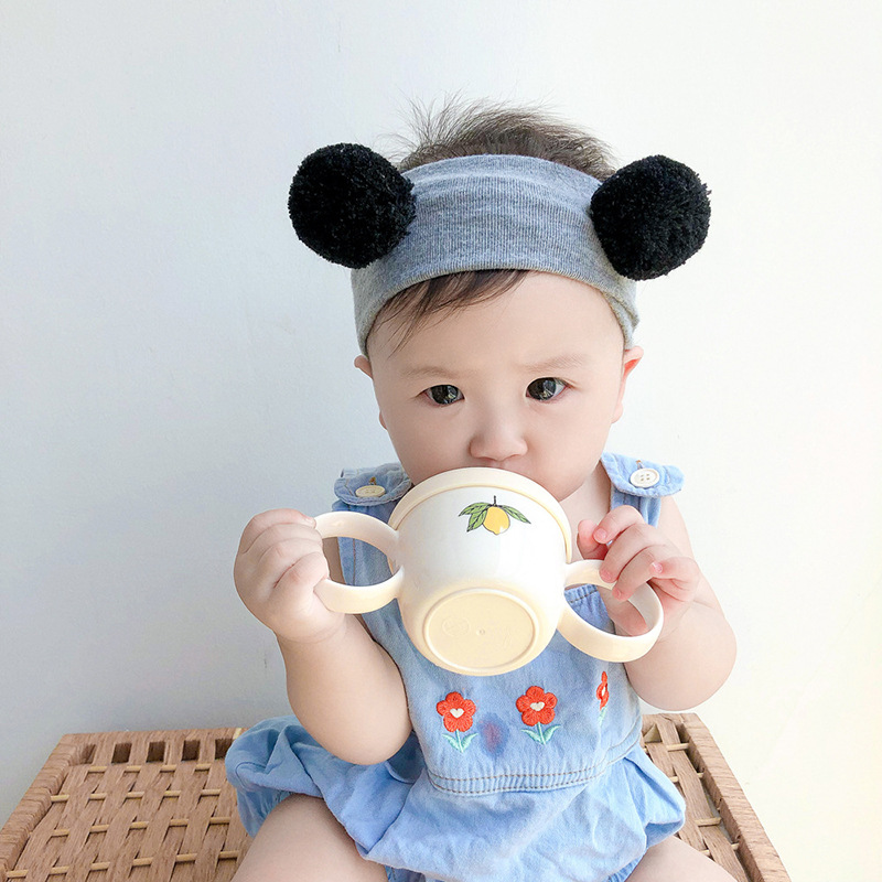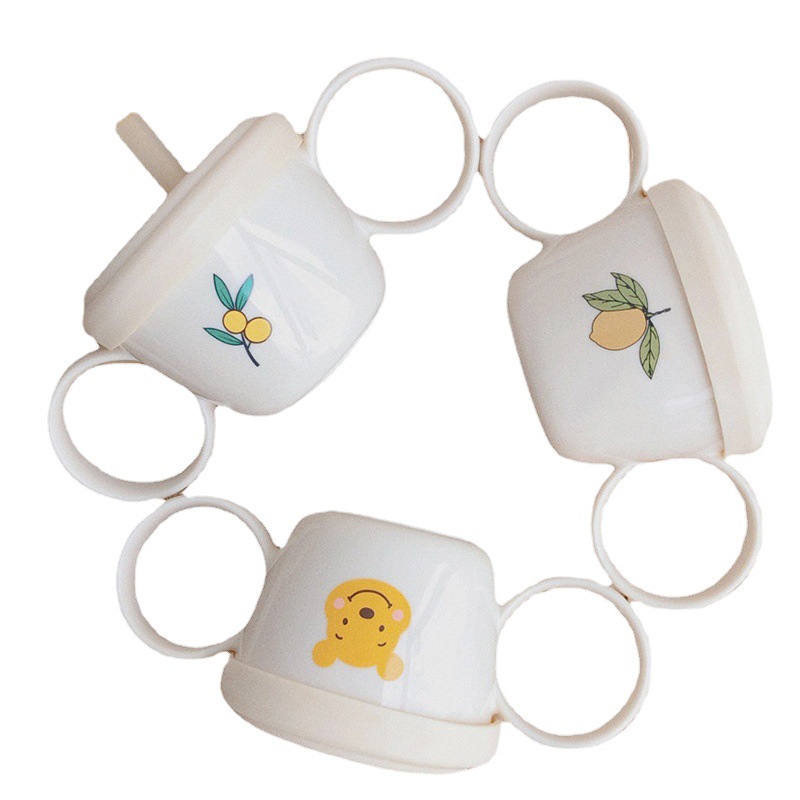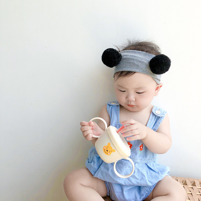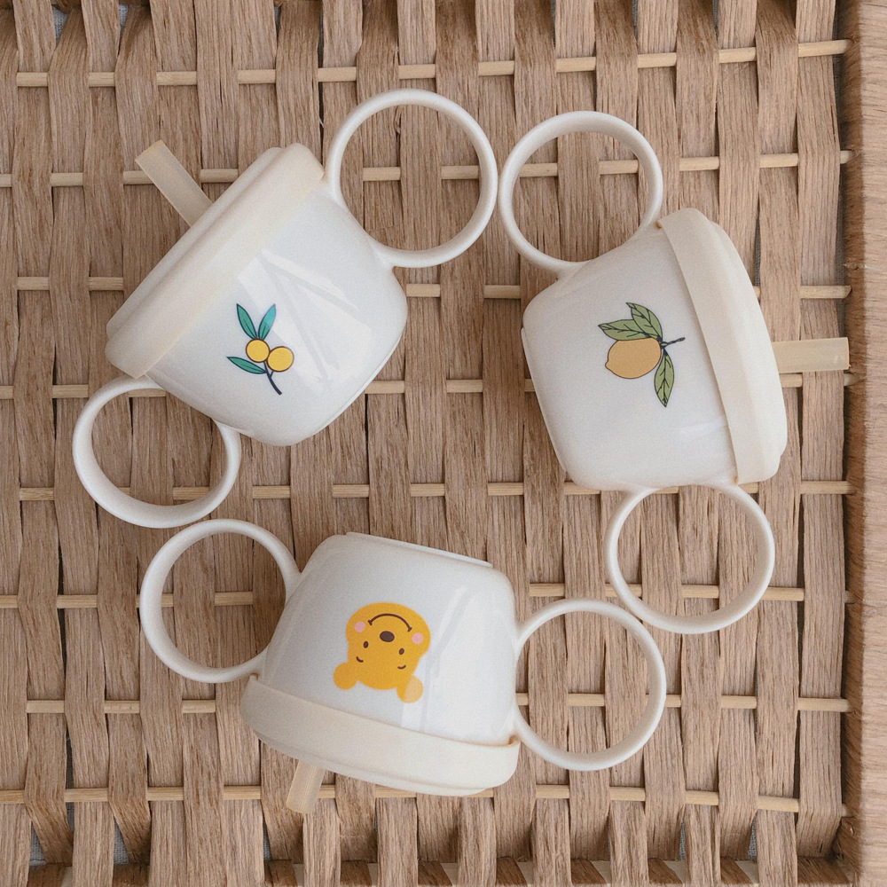 Korean Style Bear Print Baby Binaural Water Cup With Lid Straw Children High Temperature Resistant Environmentally Friendly Pvc Drinking Cup