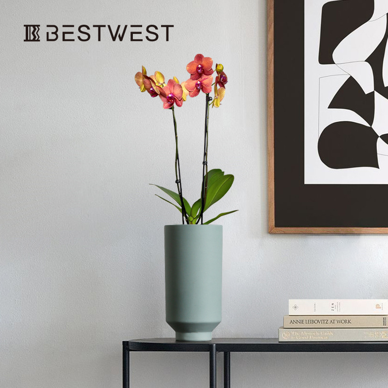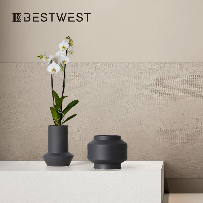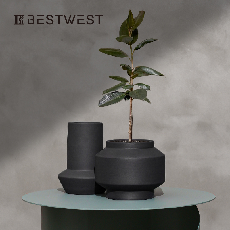 Best West Black Straight Ceramic Glazed Vase Flowerpot Home Soft Decoration Model Room Decoration Flower Vessel