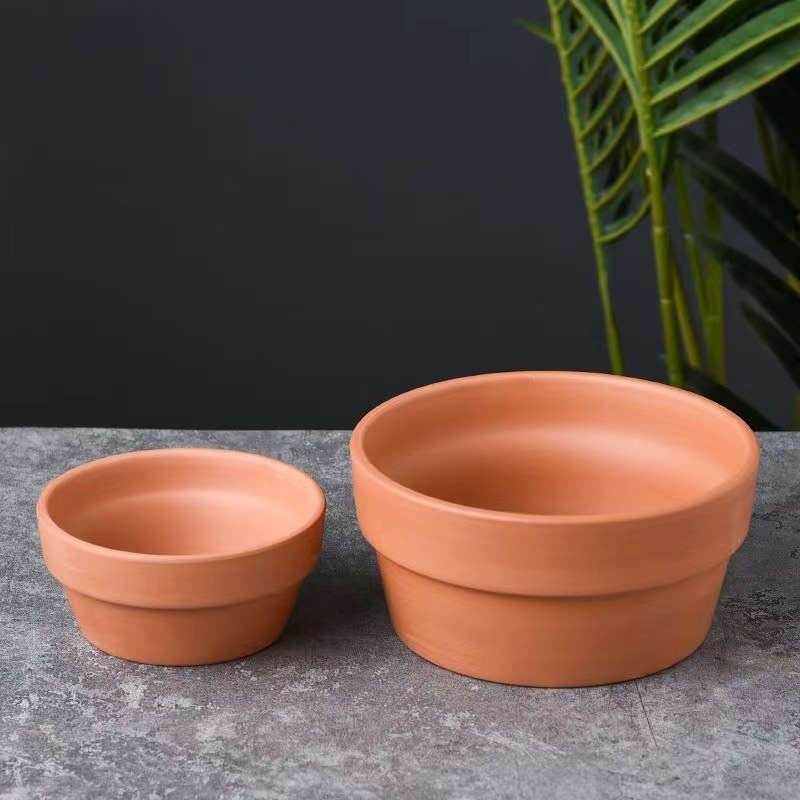 Large And Small Short Ceramic Pots Simple Water-absorbent Breathable Succulent Flower Pots Round Red Clay Flower Pots