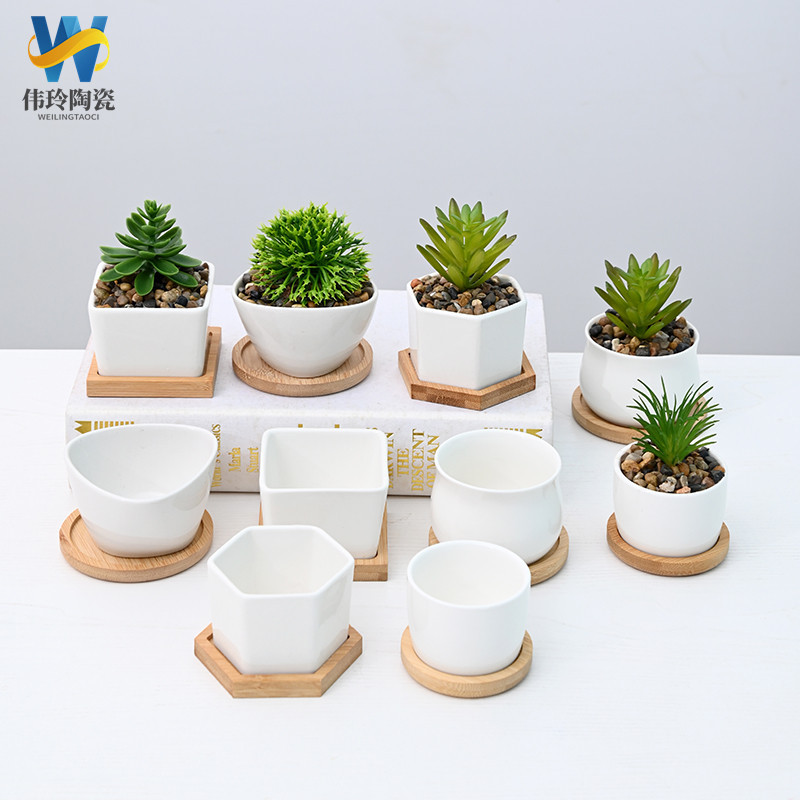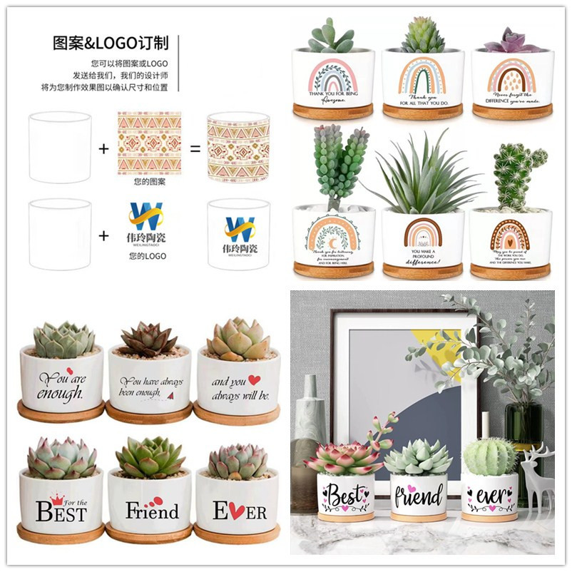 Ceramic Succulent Flower Pots With SPrinted On White Porcelain Foreign Trade Gardening Home Furnishings Aromatherapy Candle Cups