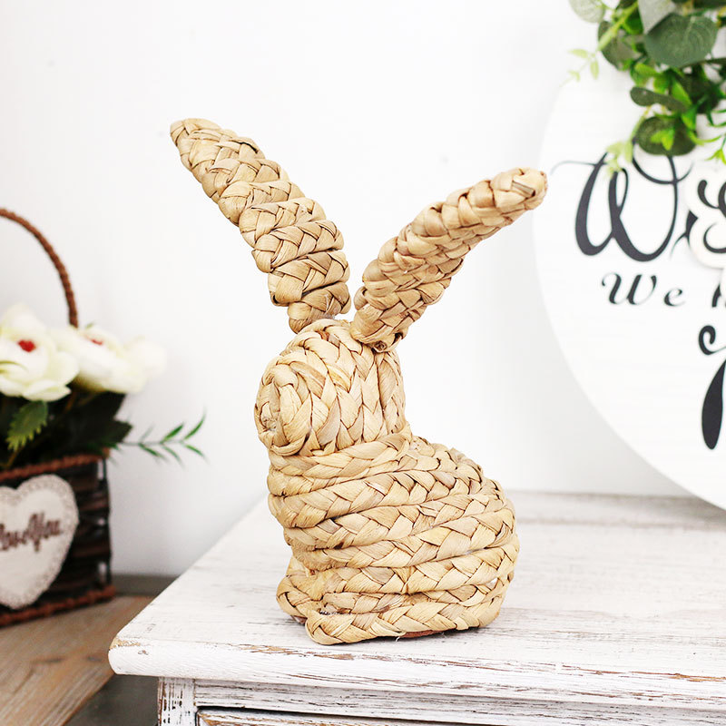 Products Easter Decorations Hand-woven Cattail Easter Bunny Creative Home Crafts Ornaments