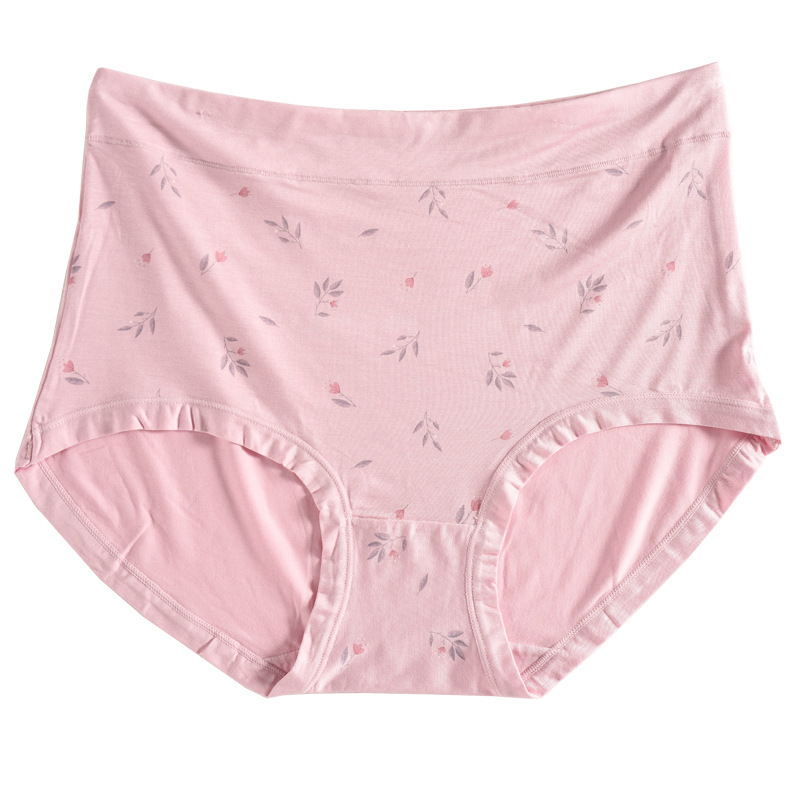 Floral Bamboo Fiber High Waist Underwear Women's Printed Large Size Fat MMYouth Briefs