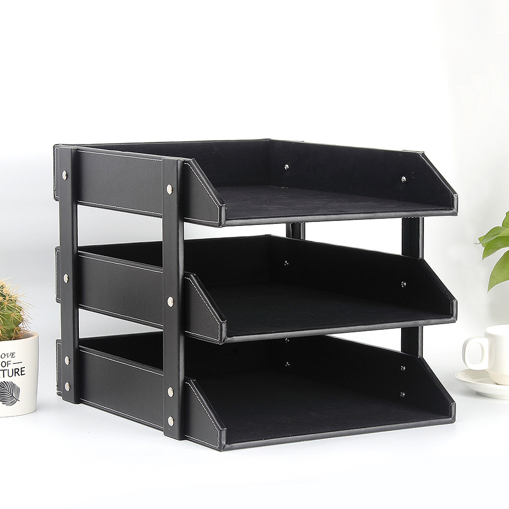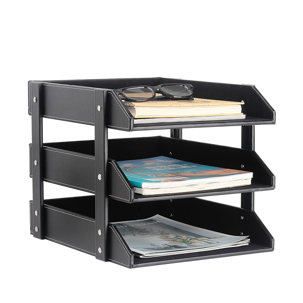 Business Leather Three-layer File Rack File Tray File Frame/seat Desktop Information Stationery Office Storage File Column