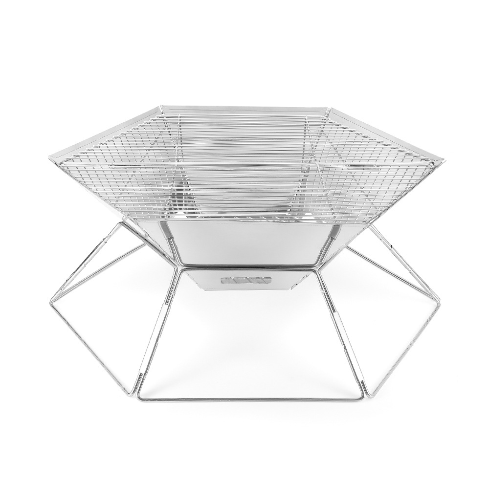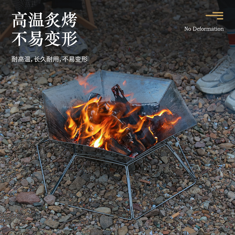 Outdoor Hexagonal Folding Wood Stove Camping Fire Table Multi-function Charcoal Stove Barbecue Rack Folding Portable