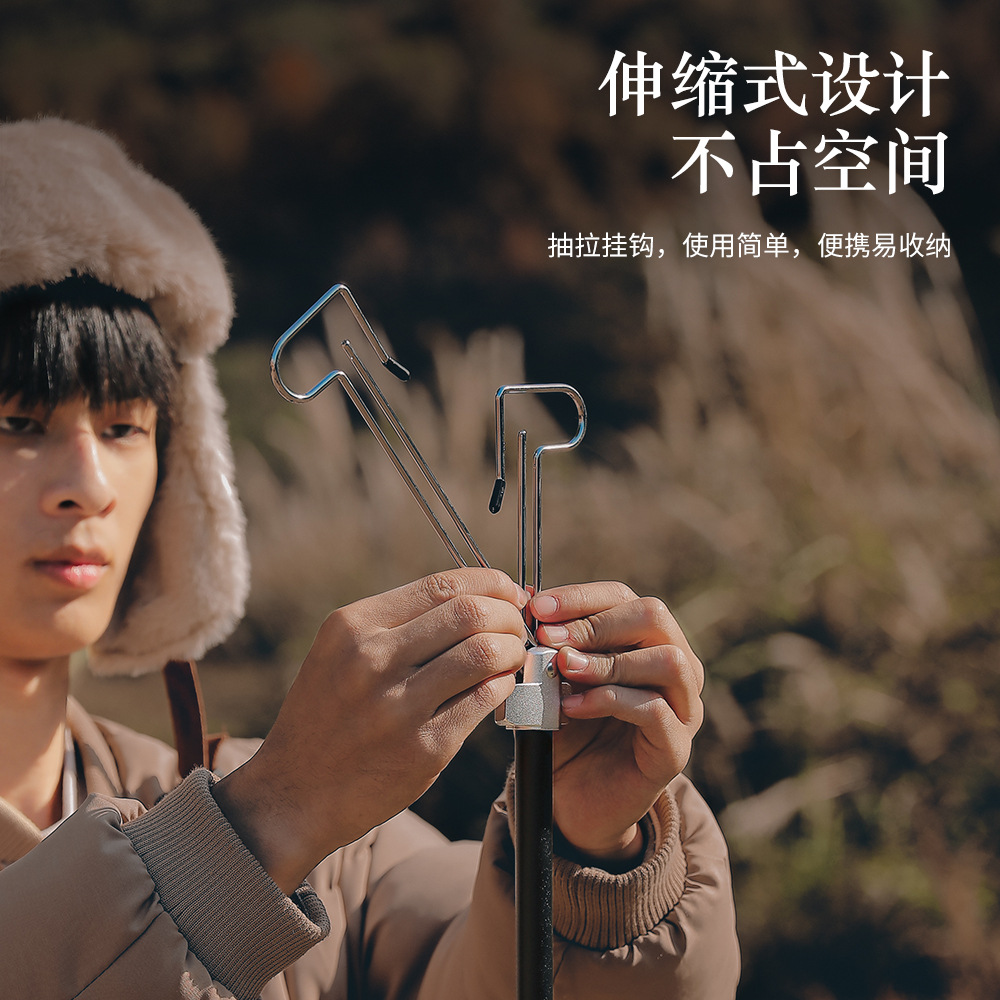 Outdoor Detachable Double Hook Lamp Stand Bracket Portable Retractable Double Head Lighting Pole Camping Lamp Hook Rack