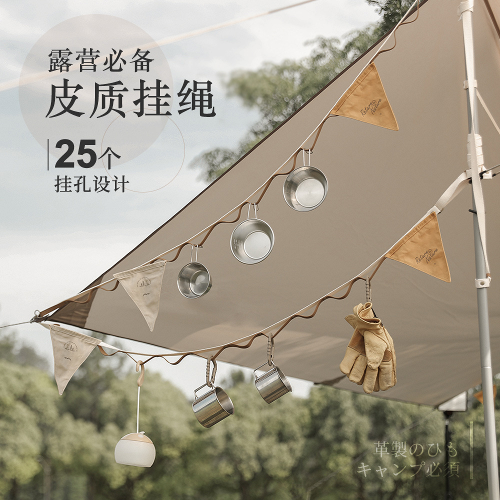 Outdoor Clothesline Travel Leather Leather PUTent Camping Equipment Webbing Extended Tent Lanyard With Storage Bag