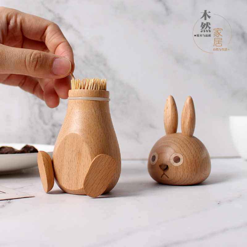 Creative Children's Toys Cute Rabbit European-style Commercial Toothpick Holder Light Luxury Style Wooden Household Toothpick Box