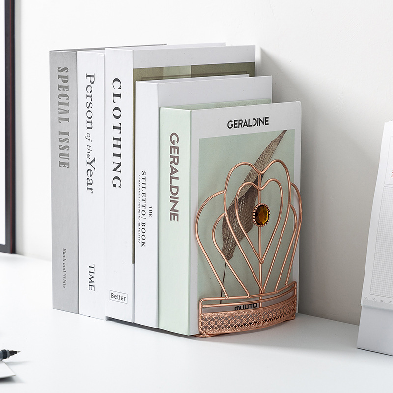 Mingqiang Nordic Style Crown Bookstand Metal Bookends Student Office Desk Book Storage And Organization