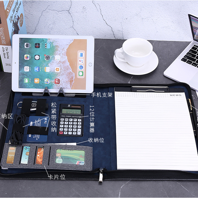 A4 Multifunctional Information Contract Business Office Meeting Manager Folder Leather Cloth Pattern Loose-leaf Portable Zipper Folder