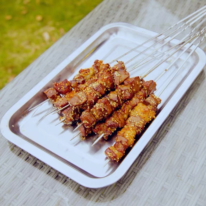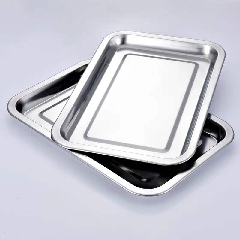 Stainless Steel Dinner Plate Thickened Stainless Steel Barbecue Plate Household Rectangular Tray Barbecue Stainless Steel Food Plate