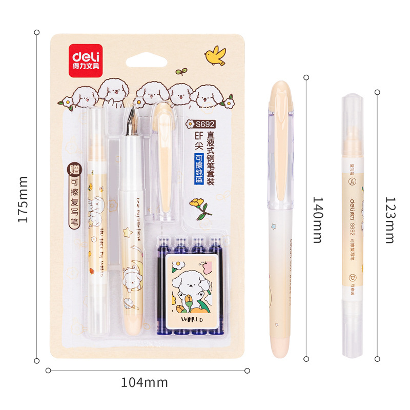 Deli S692 Steel Pen Straight Liquid Pen Replacement Ink Bag Pen Suction Card Magic Blue Erasable Pen Package