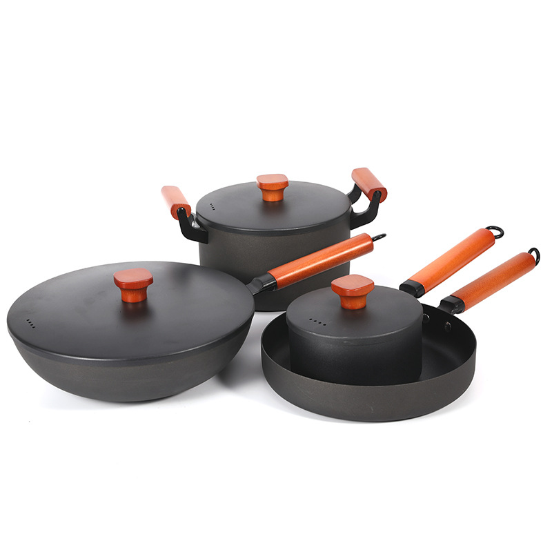 Ancient Cast Iron Pot Set,Household Non-stick High-end Wok Set,Three Or Four Pieces,Universal For Induction Cooker