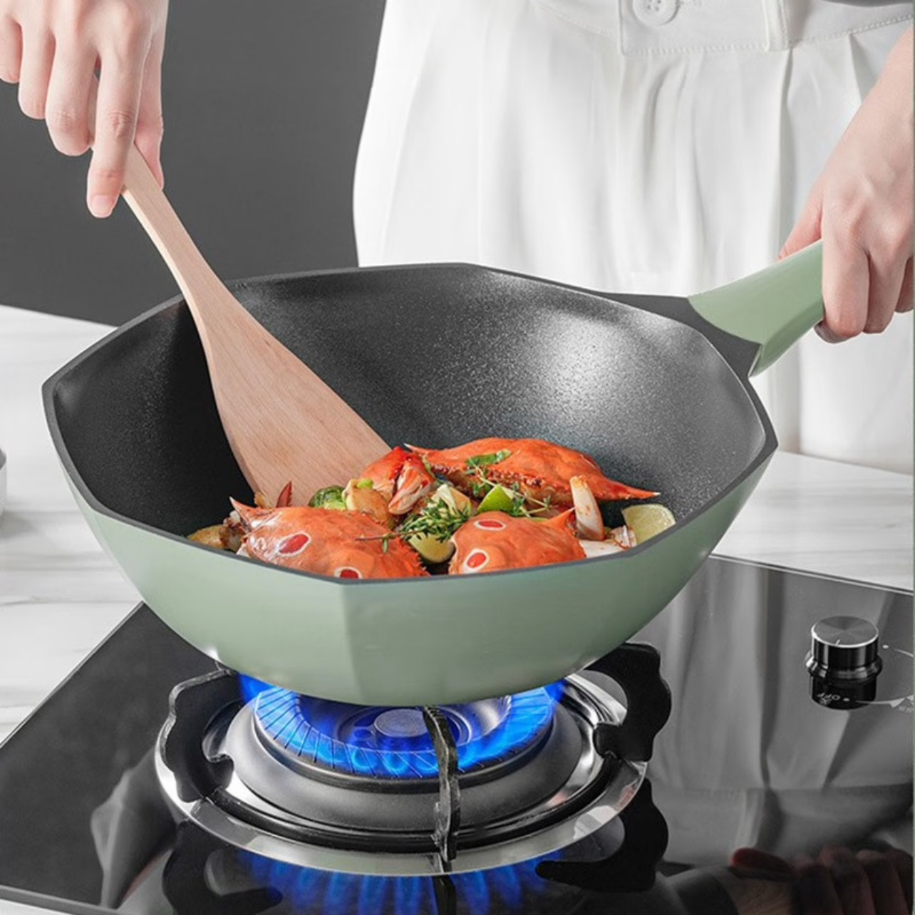 Pot,Wok,Medical Stone Non-stick Pot,Internet Celebrity Diamond Octagonal Pot,Household Flat-bottomed Low-smoke Cooking Pot