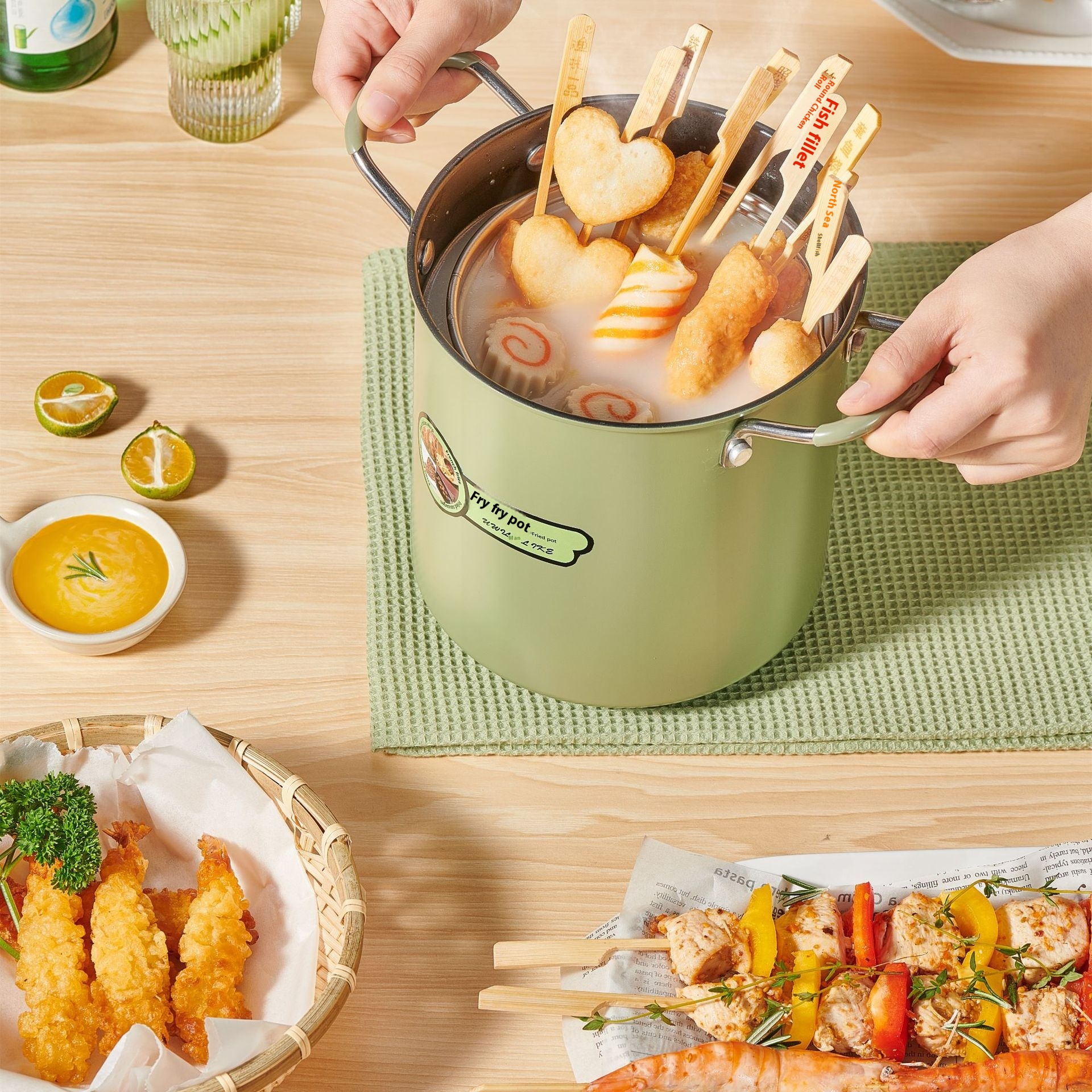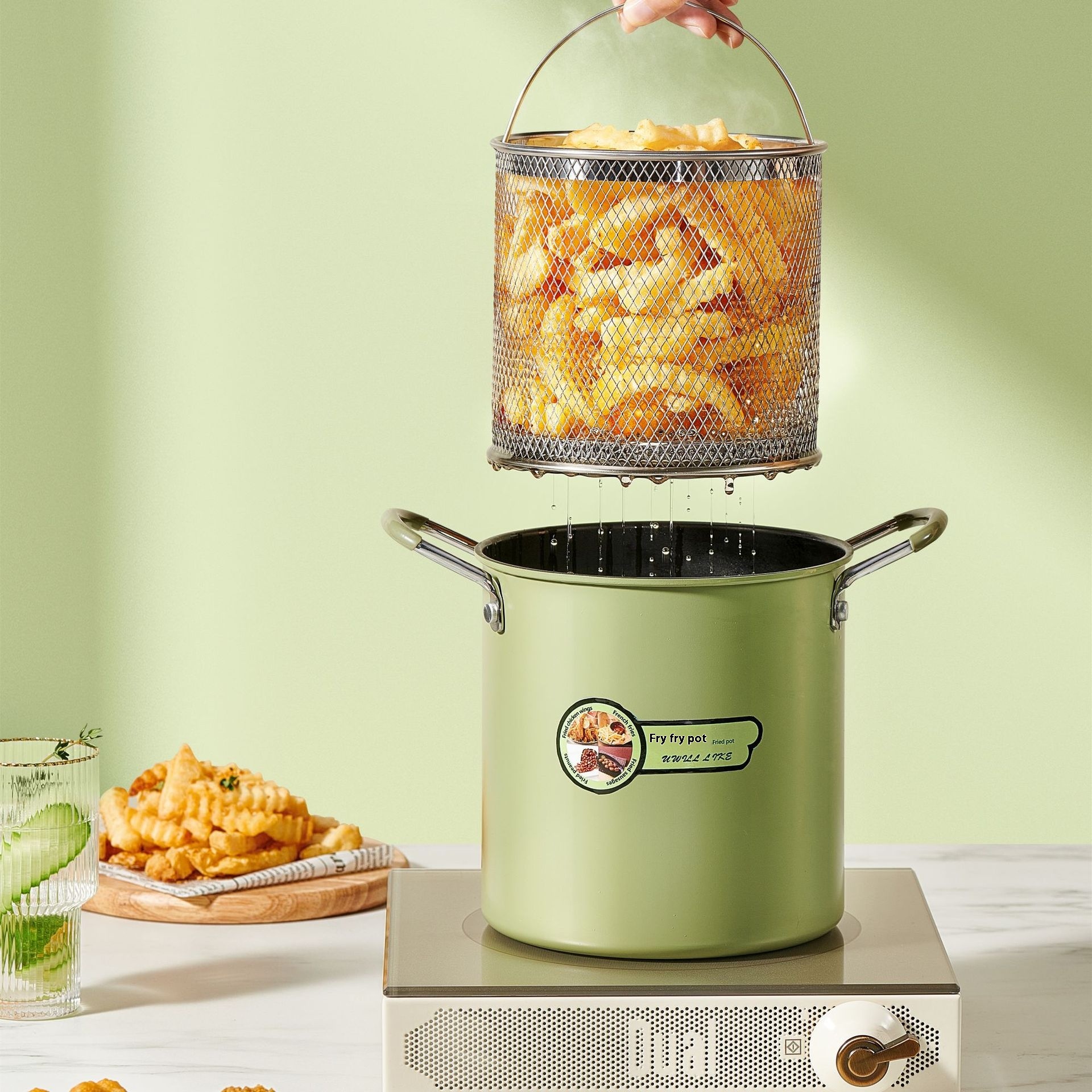 Kitchen Oil Tank Kettle Oil Storage Filter Residue Frying Three-in-one Deep-frying Kettle Artifact Household No-oil Japanese-style Noodles Pot