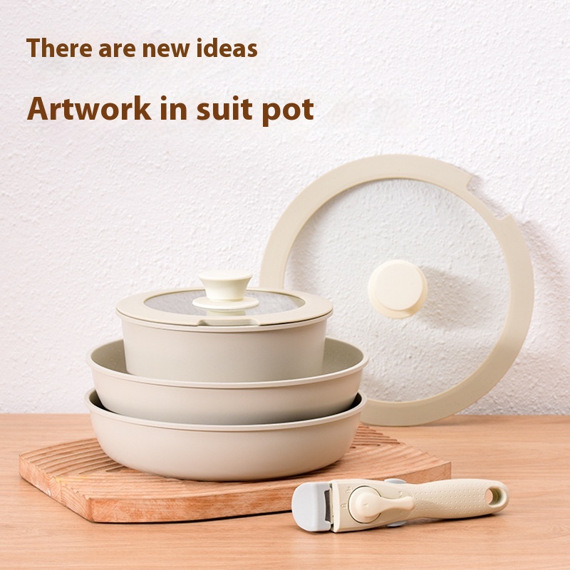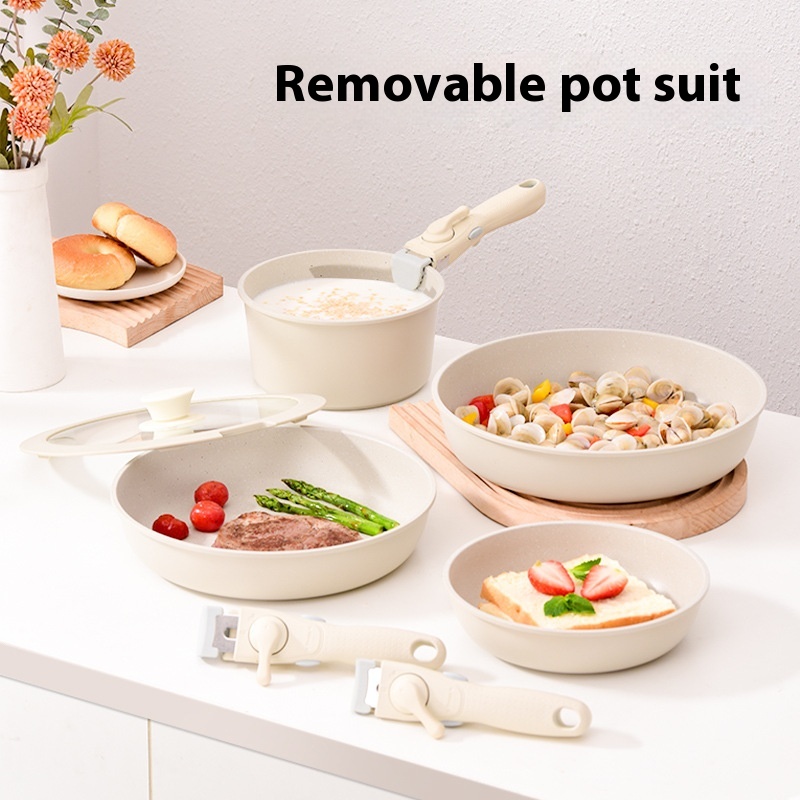Medical Stone Non-stick Removable Pot Set White Matryoshka Pot Household Kitchenware Outdoor Camping Cookware