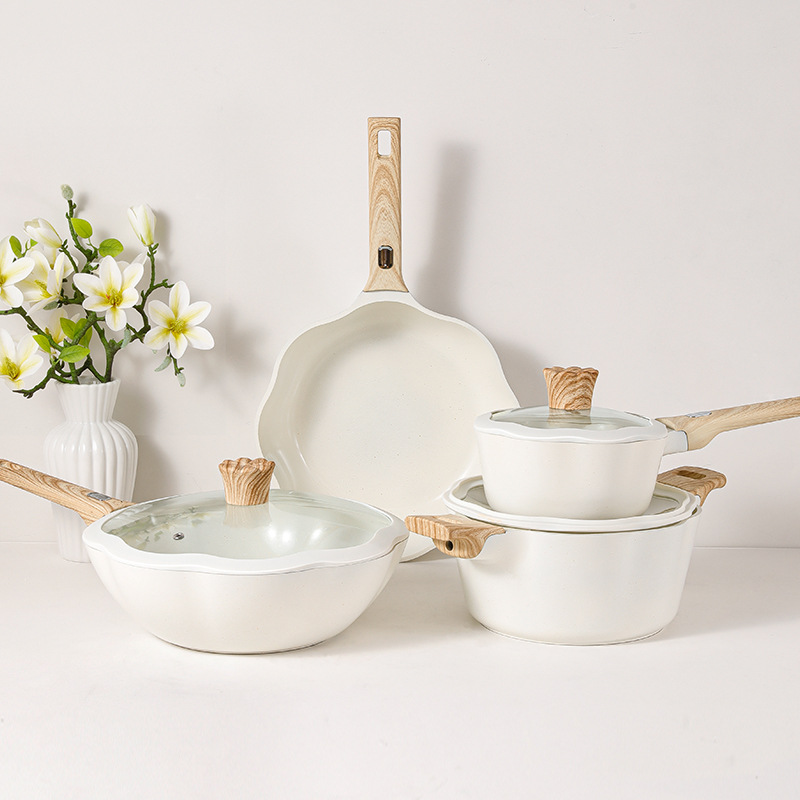 Household Magnolia Ceramic Non-stick Set Pot Pan Milk Pan Frying Pan Aluminum Die-cast High-end Gift Petal Pot