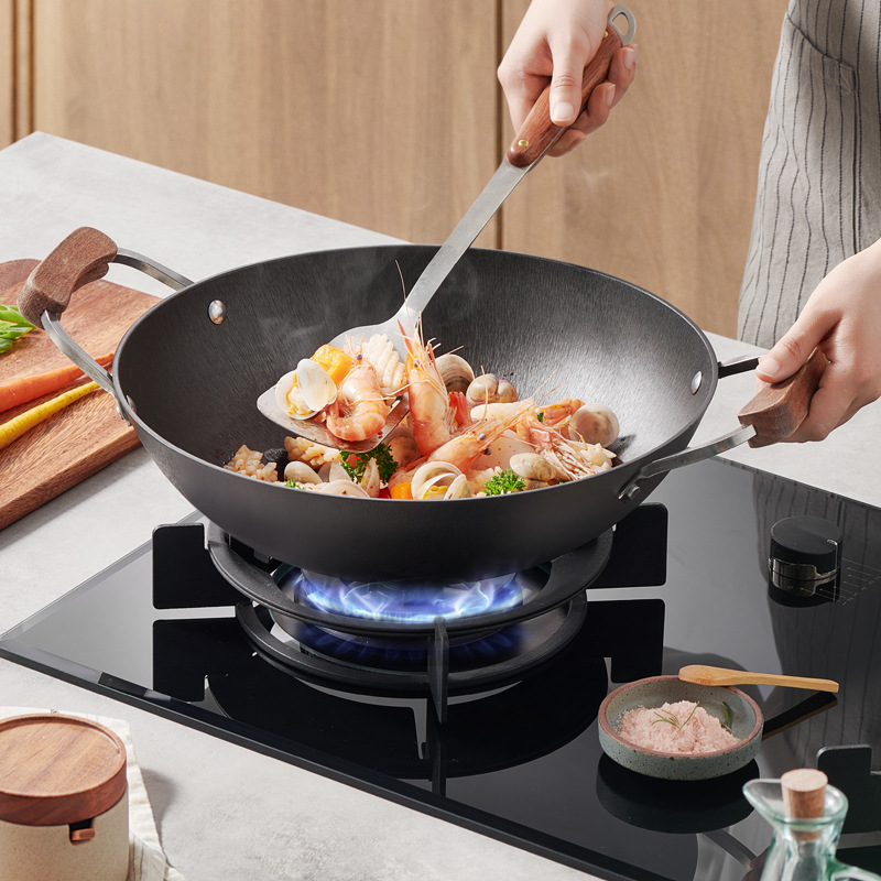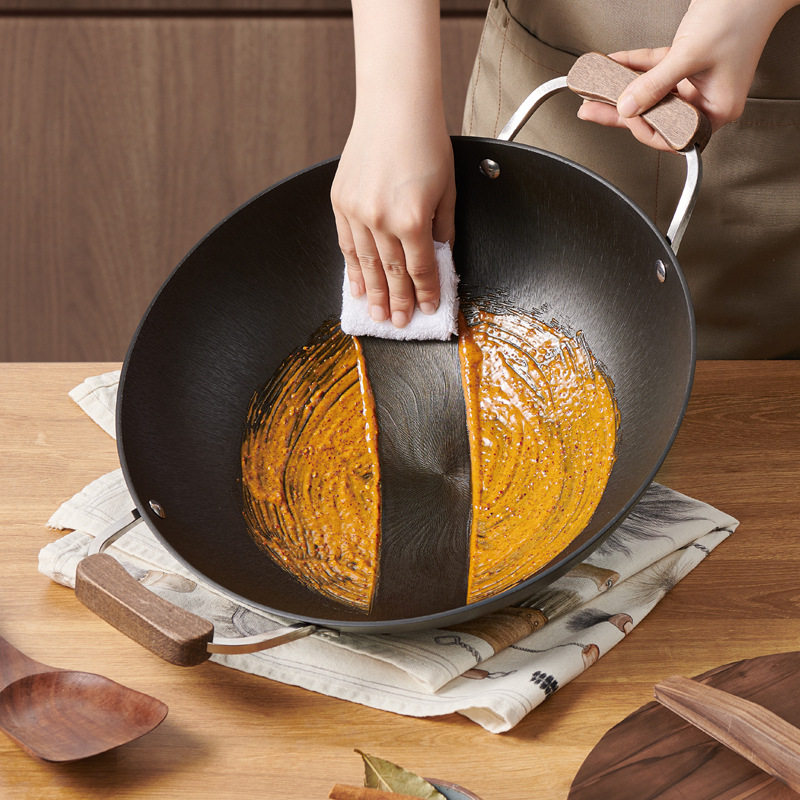Yongwangda Flat-bottom Pan,Nano Hammered Pure Iron Frying Pan,Household Non-coated Non-stick Frying Pan,Suitable For Gas Stoves