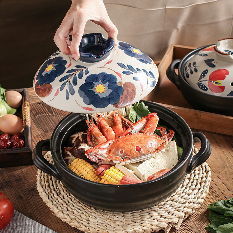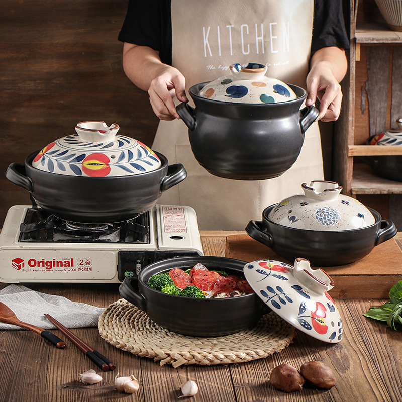 Open Fire High Temperature Resistant Hand-painted Soup Pot Japanese Stew Pot Earthen Pot Clay Pot Rice Stew Pot Ceramic Small Casserole Hotel Shallow Pot