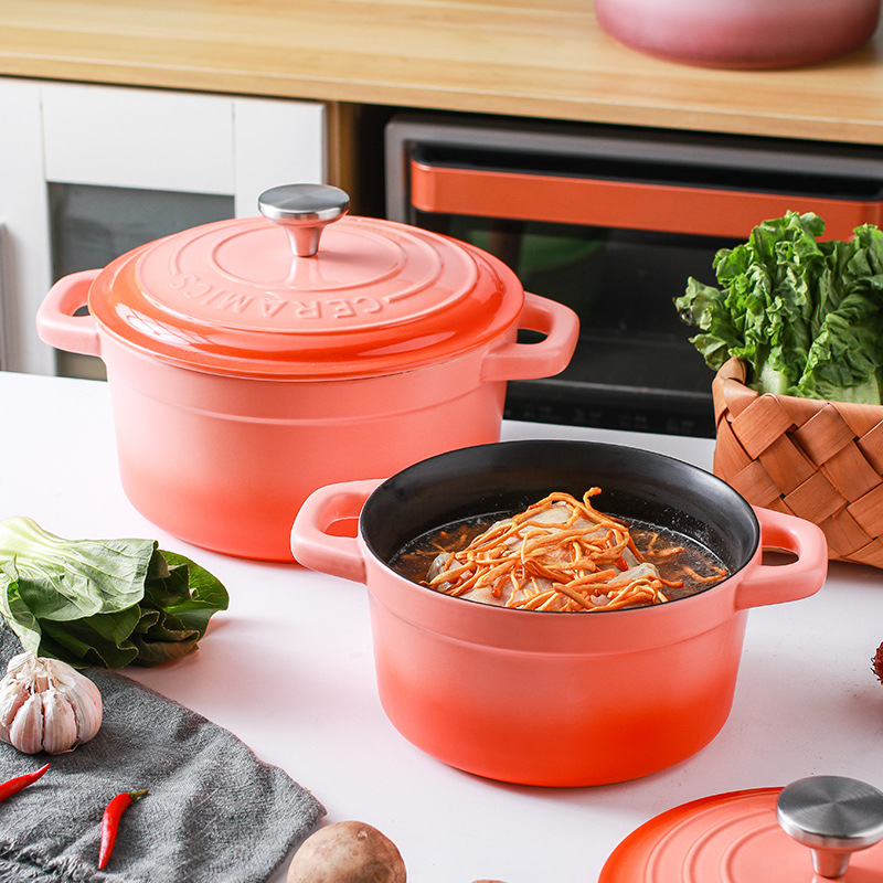 Cool Color Gradient Ceramic Open Flame Stew Pot Casserole Household Gas Soup Pot Non-stick Pot Small Casserole Dry Burning Does Not Crack