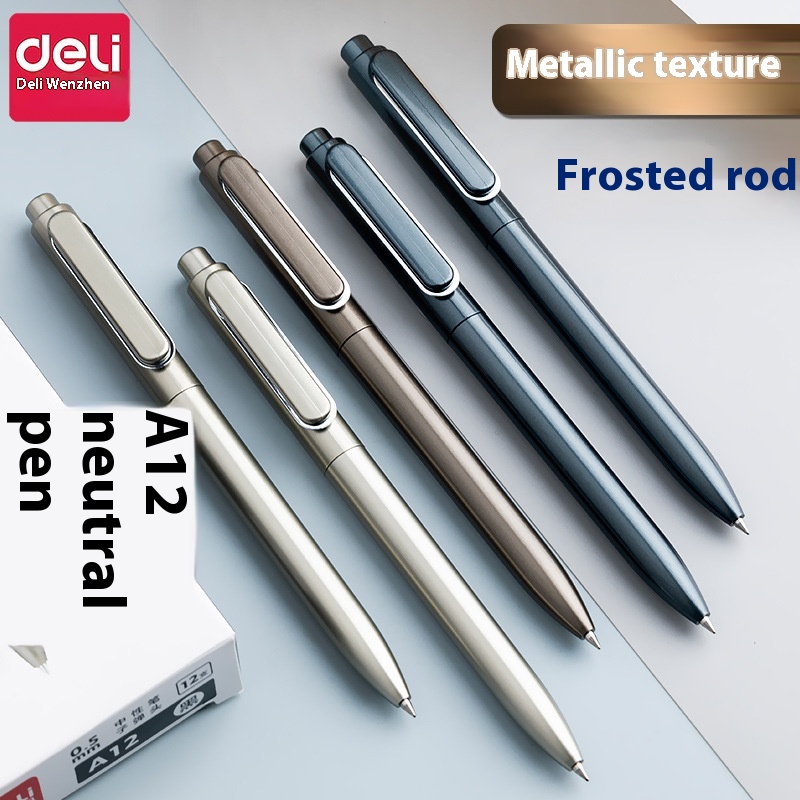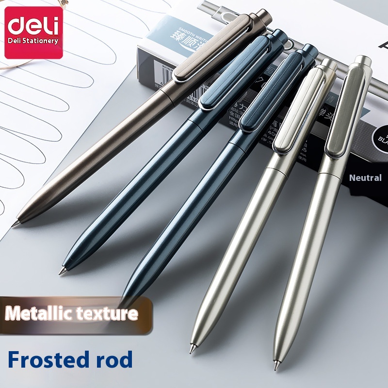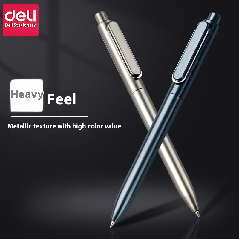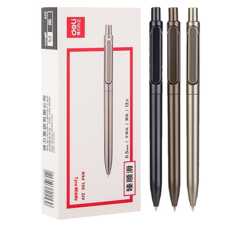 Deli A12 Press Gel Pen High-value Black Brush Question Pen Metal Bullet Quick-drying Japanese Office