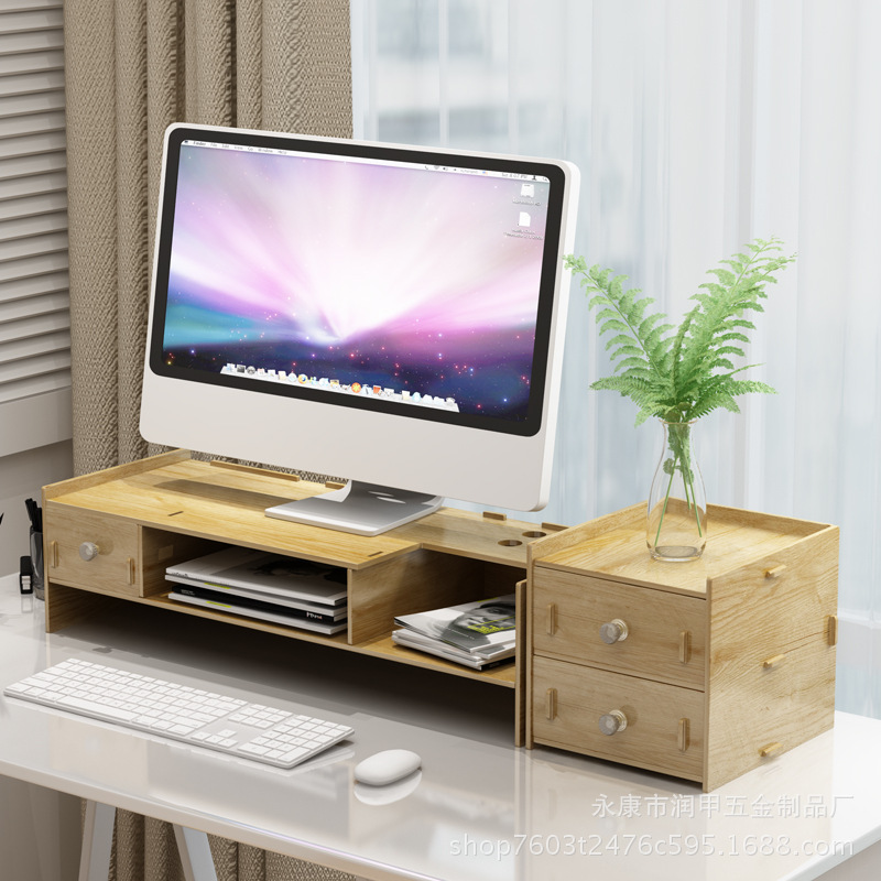 Multifunctional Desktop Computer Elevated Wooden Office Storage Drawer Storage Rack Creative Monitor Base