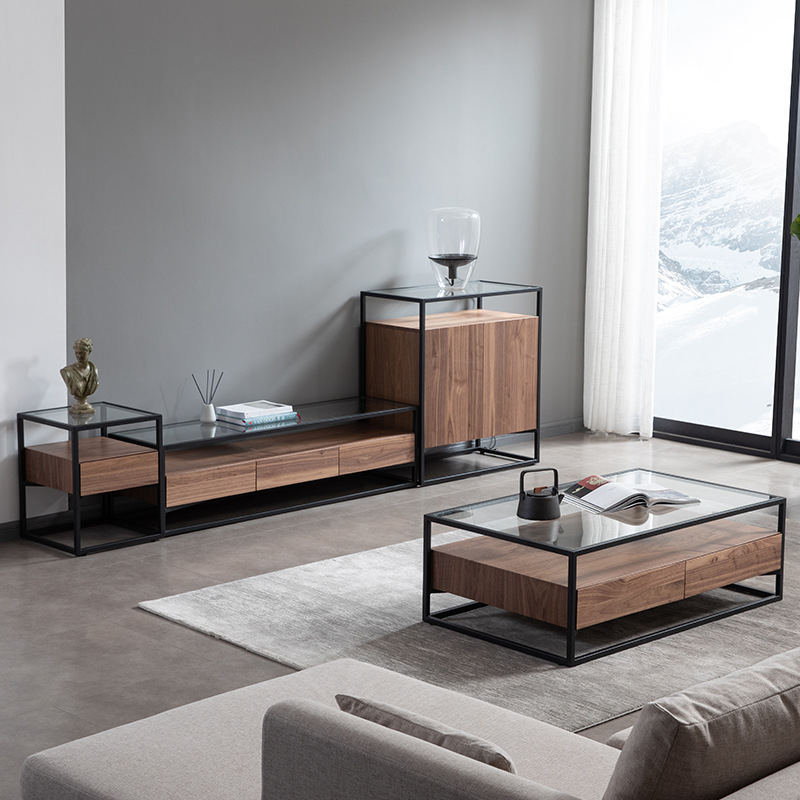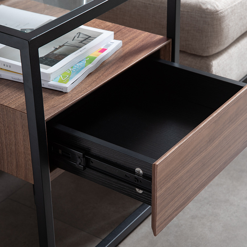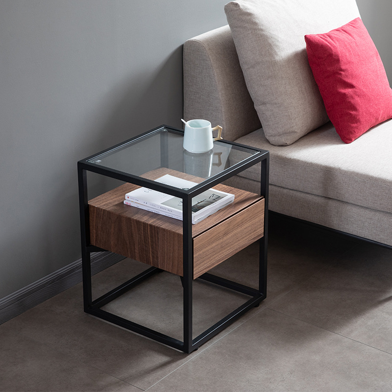 Home Modern Simple Sofa Side Table Storage Light Luxury Side Cabinet Small Square Table Living Room Bedroom Glass Side Table Customization