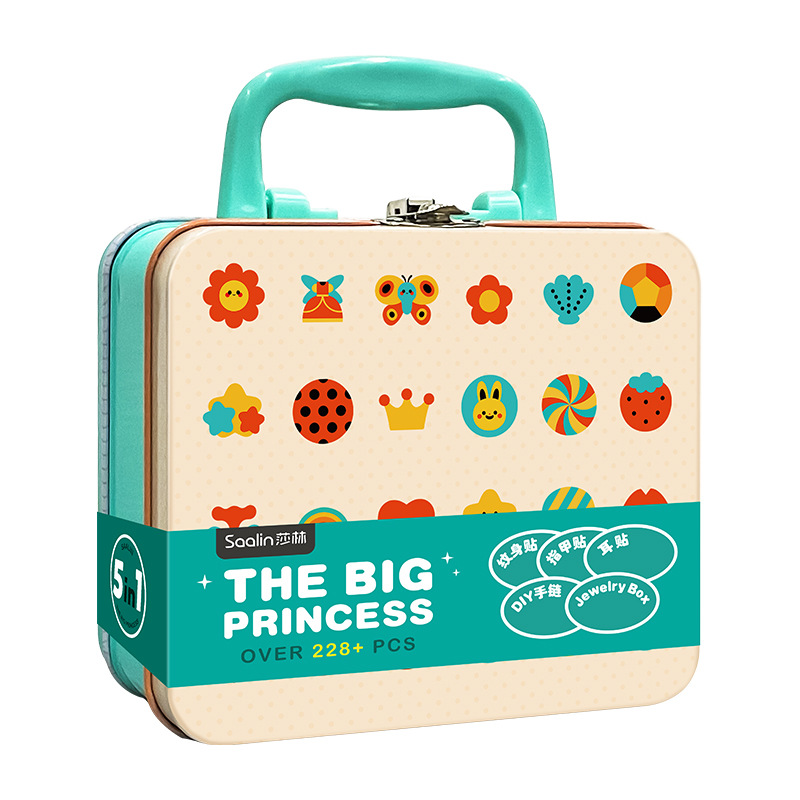 Saalin Beautiful Princess Suitcase Set Children Kindergarten Tattoo Nail Sticker Diy Material Toys