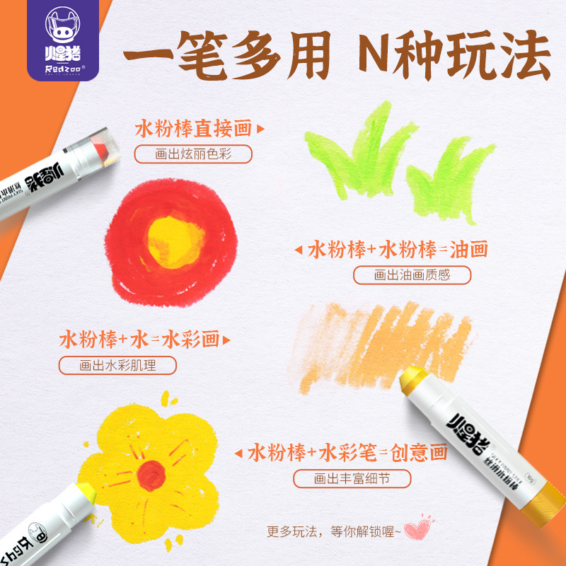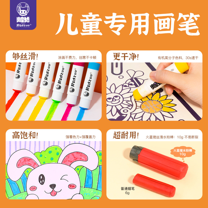 Redzoo Mars Pig Silky Solid Gouache Stick Water-soluble Washable Children's Art Graffiti Brush Oil Pastel Stick
