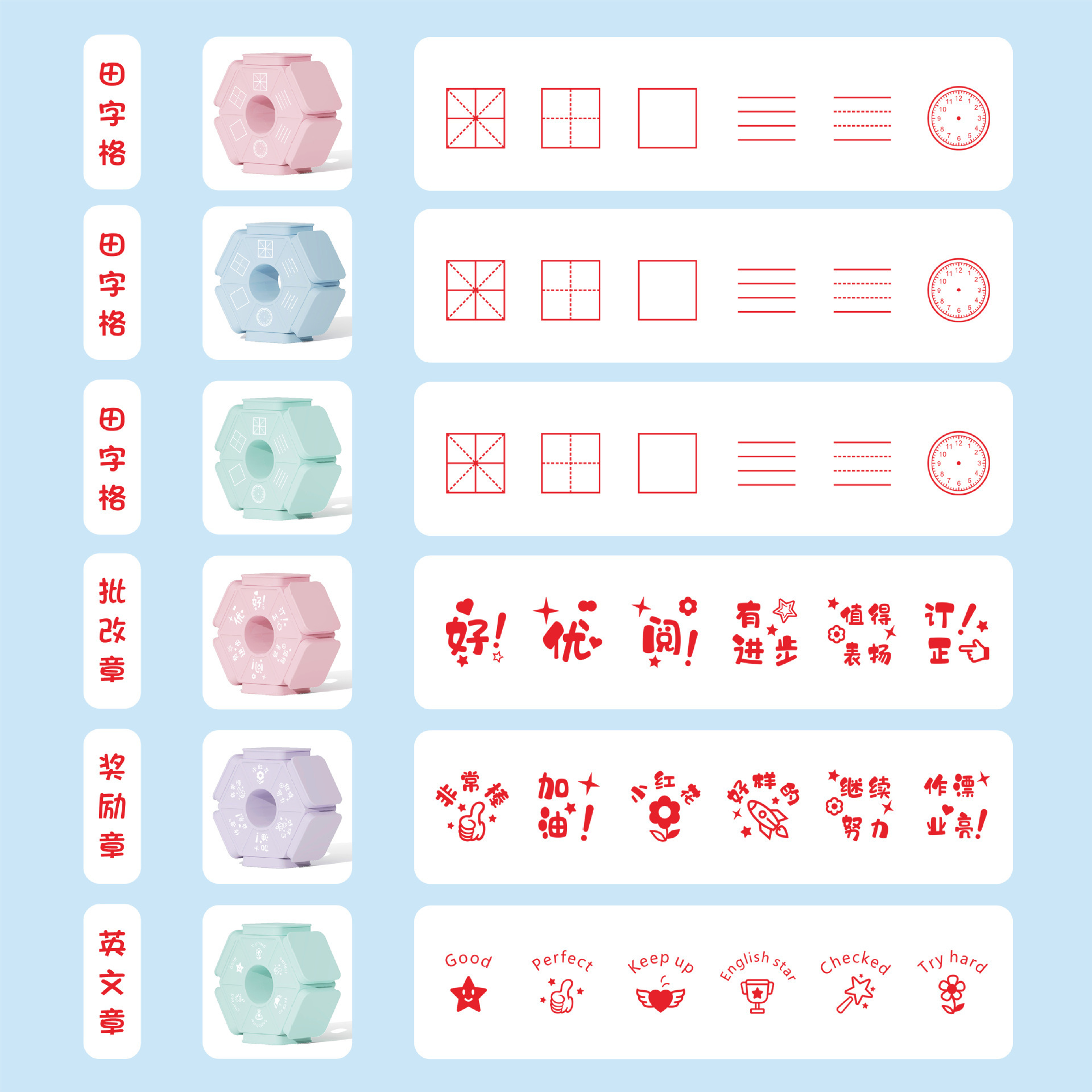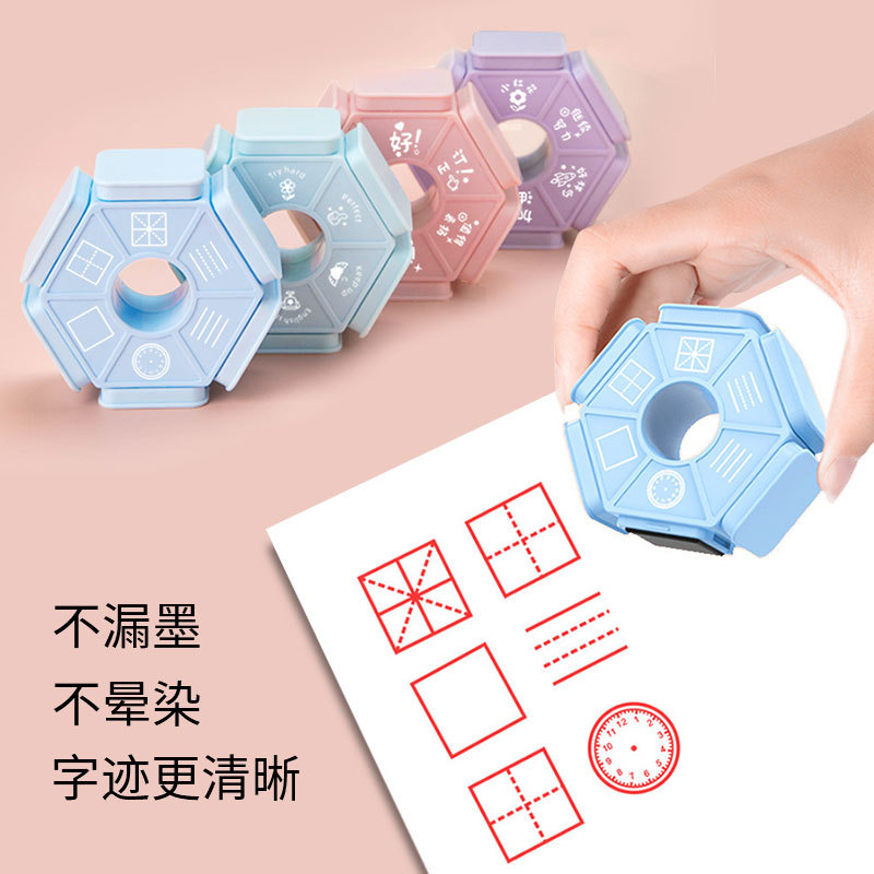 Six-sided Children's Seal.Teachers Use It To Reward Comments For Correcting Homework.Students Correct Their Mistakes With Clock And Grid Seals.