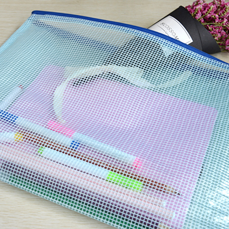 Grid Zipper File Bag Student Office Stationery Information Bag Study Supplies Receipt Storage Transparent A4 File Bag