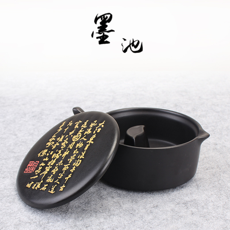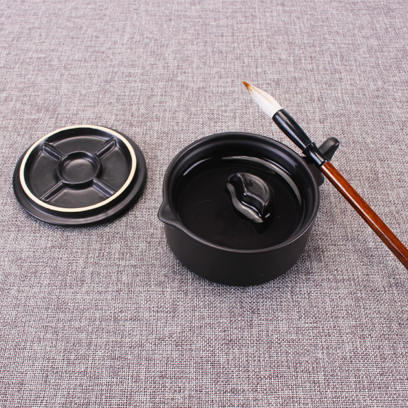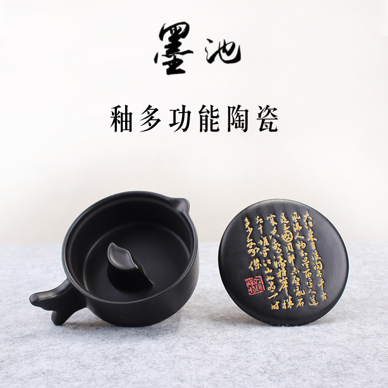 Biyoumi Multi-functional Ink Pool Inkstone With Cover Brush Holder Pen Holder Ceramic Ink Table Holding Ink Ink Sea Ink Dish Study Room