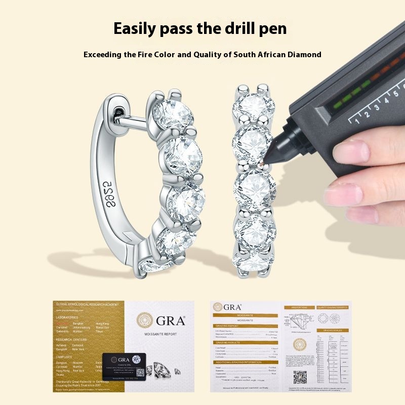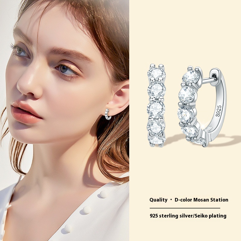 Foreign Trade Fashion Light Luxury Moissanite Earrings For Women S925 Sterling Silver Niche Temperament Earring Jewelry