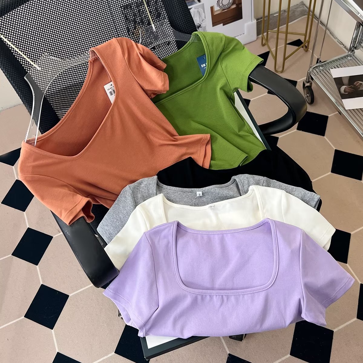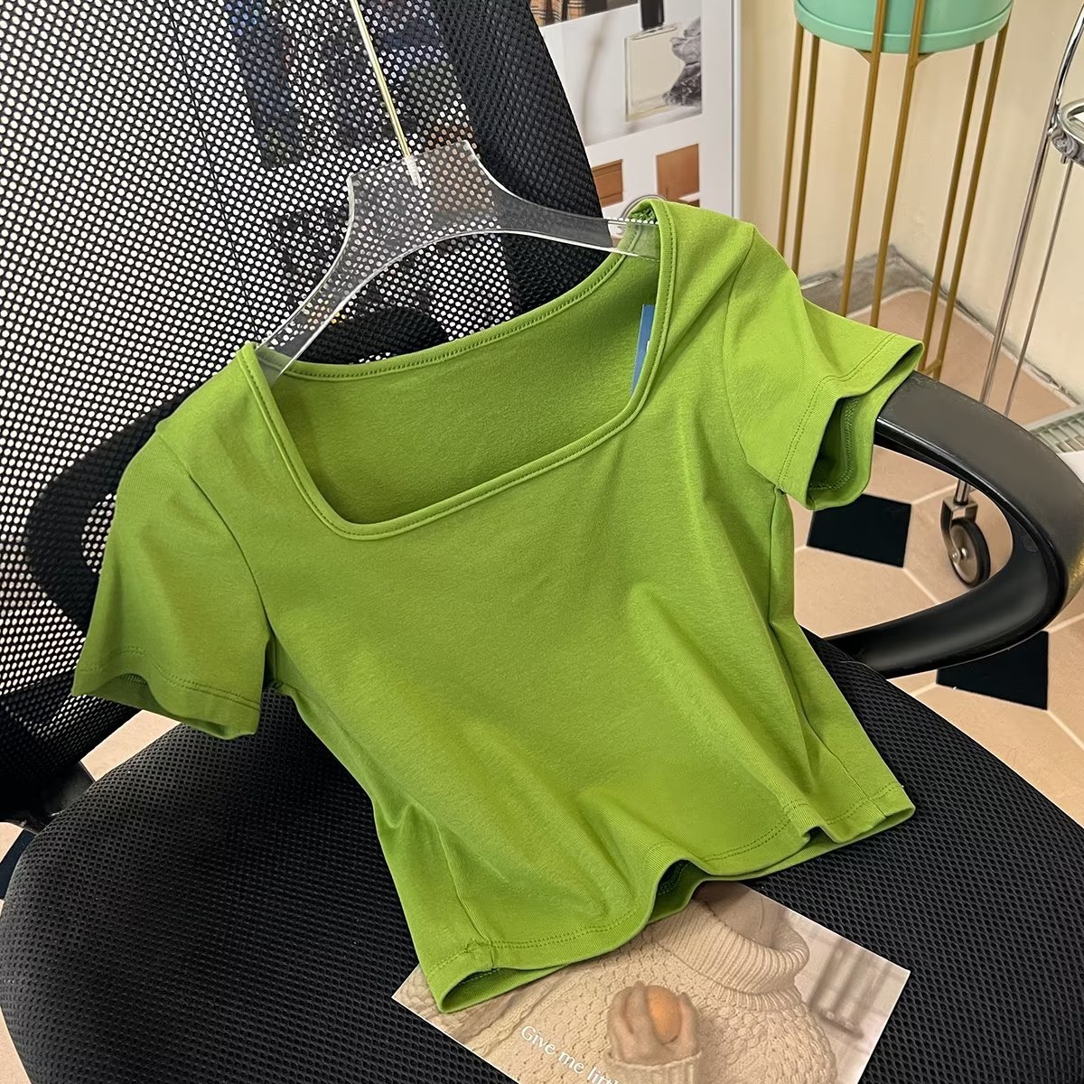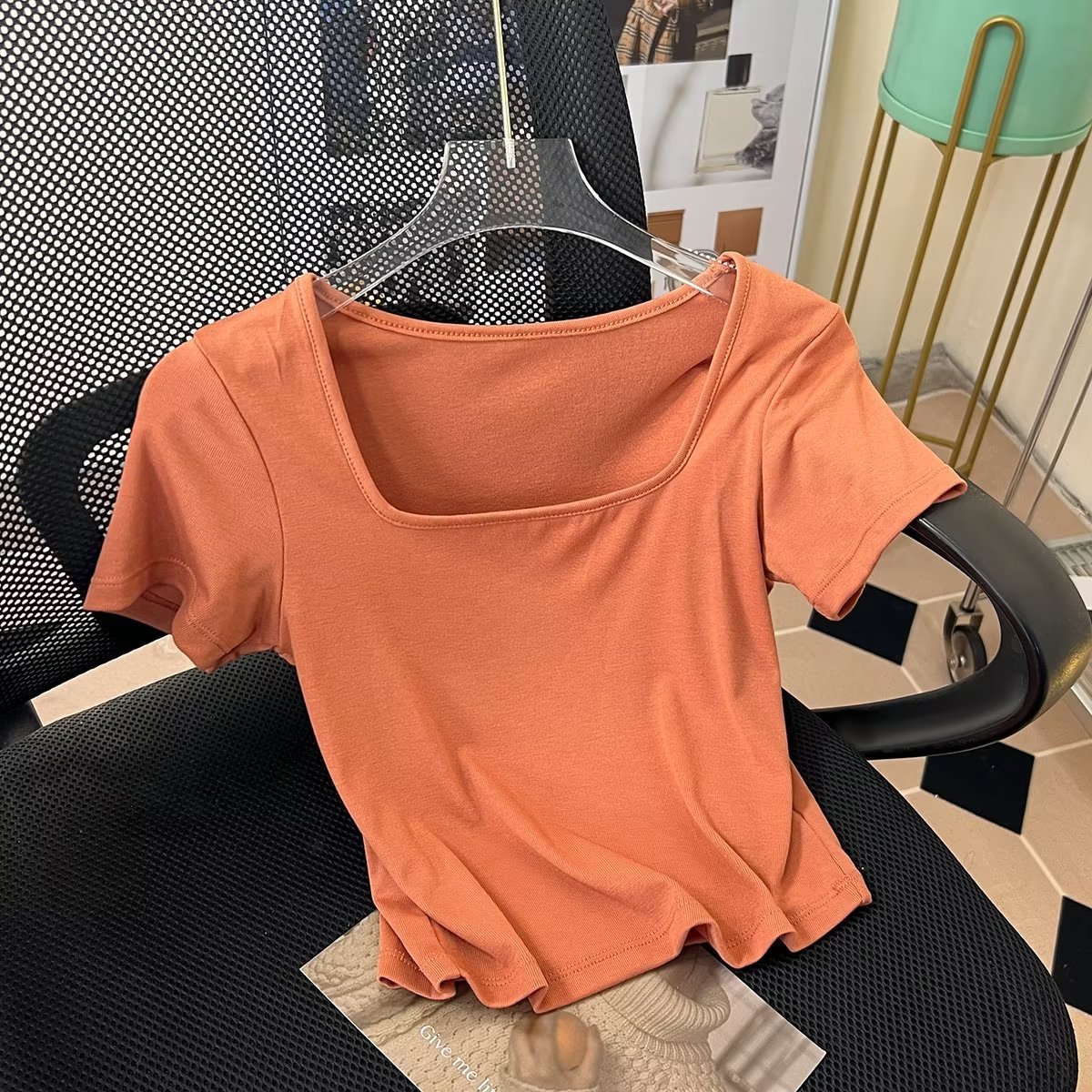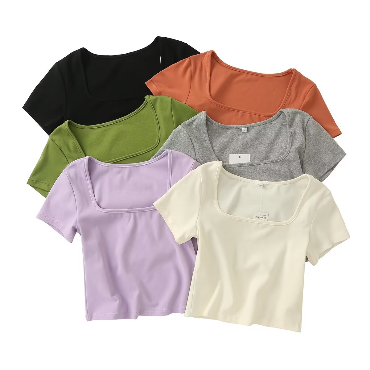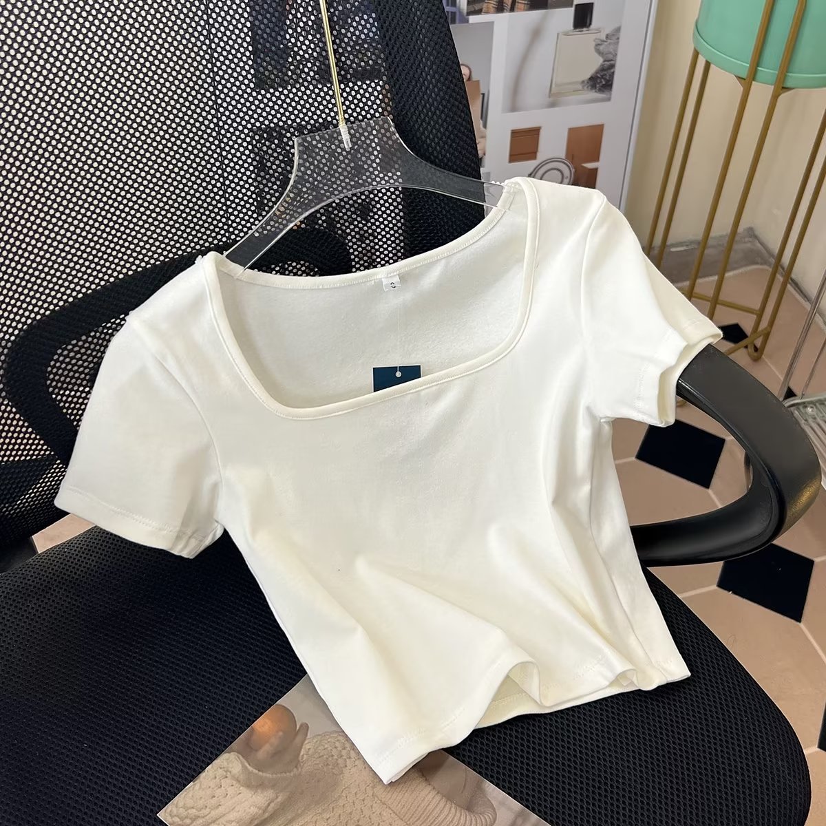 Fitting Room Cotton Ribbed Square Neck T-shirt Bm Style American Pure Desire High Waist Short Bottoming Top457673