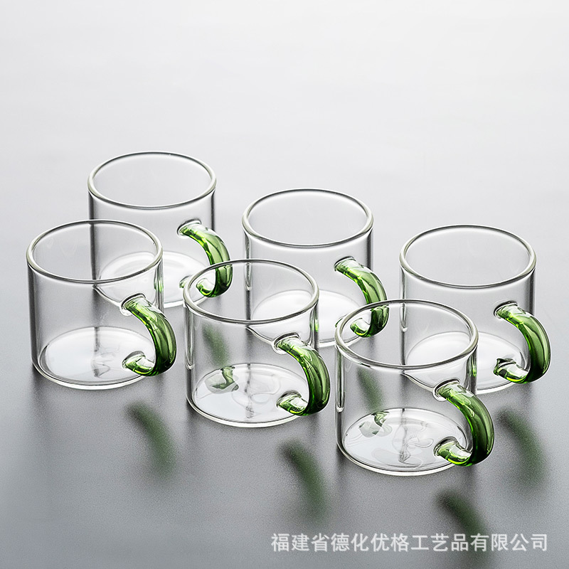 Glass Small Tea Cup With Handle,Transparent Kung Fu Tea Cup,Master Cup,Thickened Heat-resistant Green Tea Cup,Tea Set