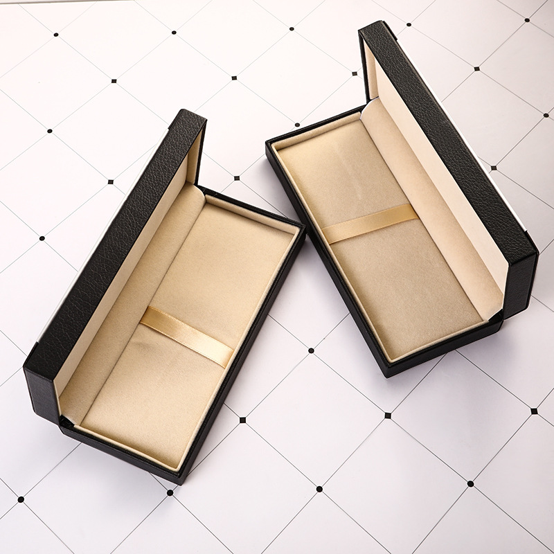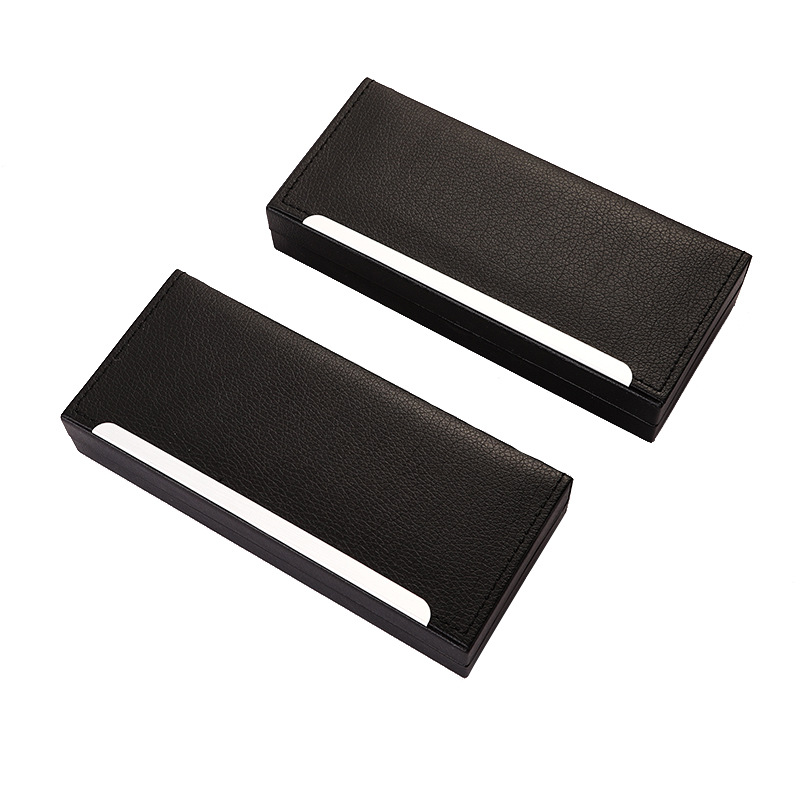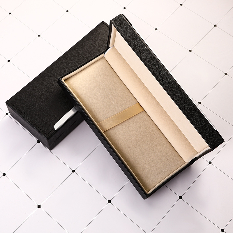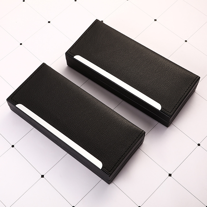 Business Gift Pu Leather Pen Box Creative Black Flip Stationery Box Hot Stamping LOG