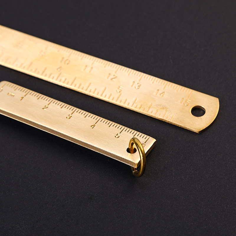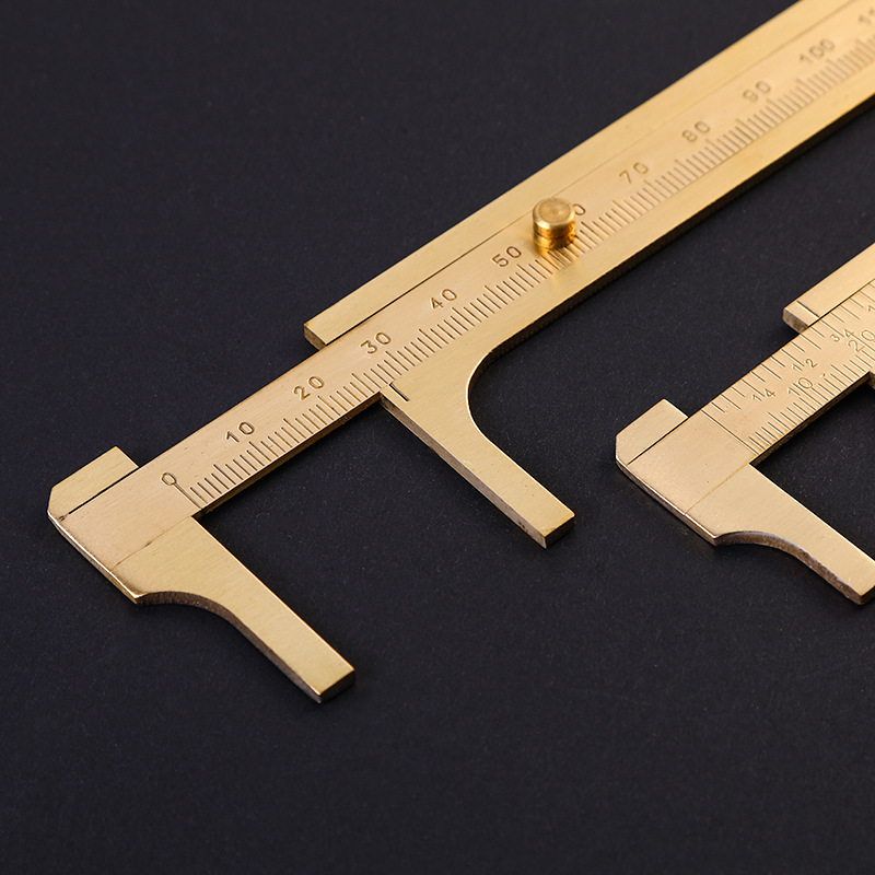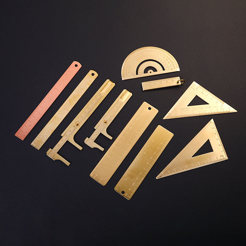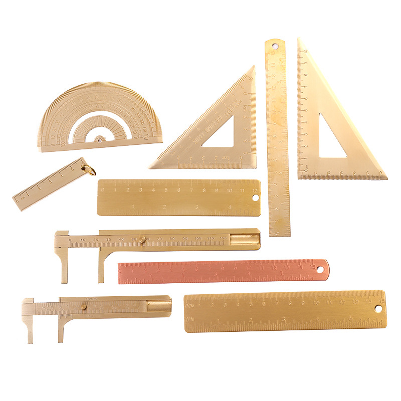Retro Metaltrument Protractor Vernier Caliper Brass Isosceles Right Angle Triangle Ruler With Ring Copper Ruler
