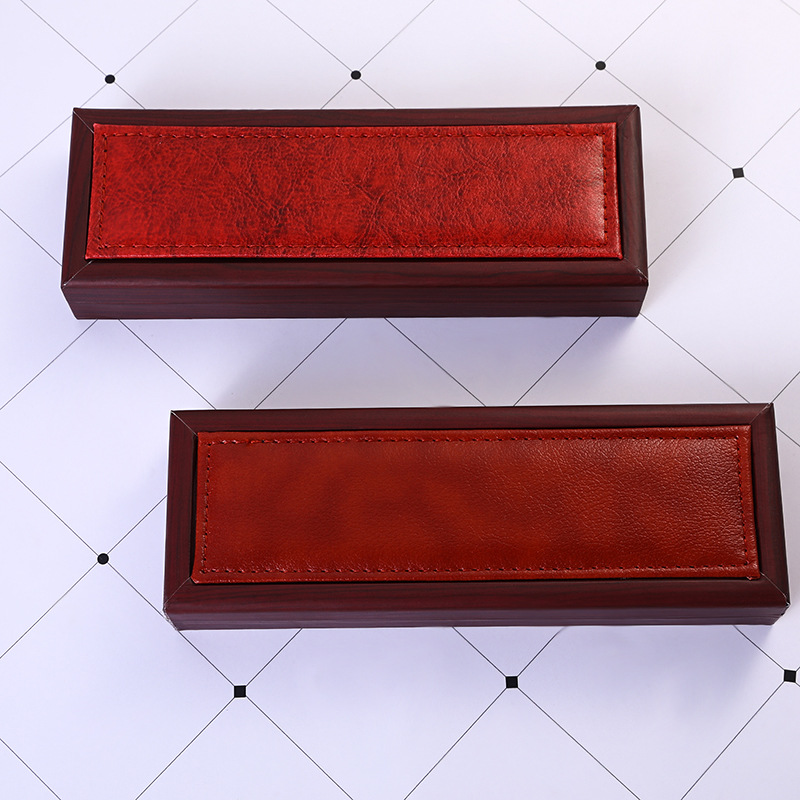 Creative Flip-top Universal Pen Box Business Stationery Retro Wooden Box Pu Leather Pencil Box