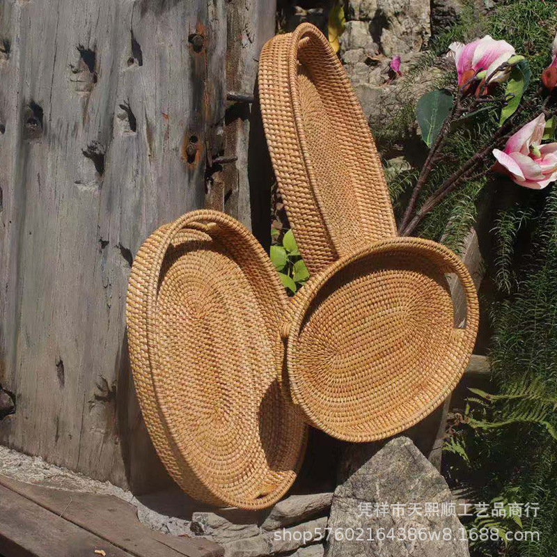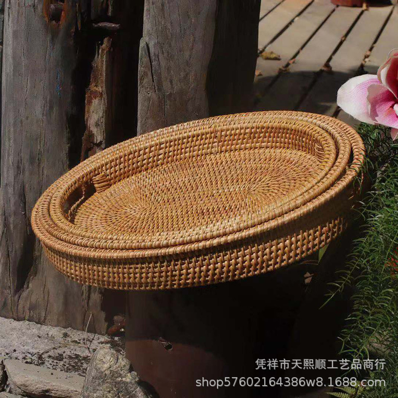 Japanese Hand-woven Basket Natural Rattan Bread Fruit Basket Rattan Double-ear Snack Tray Tea Tray