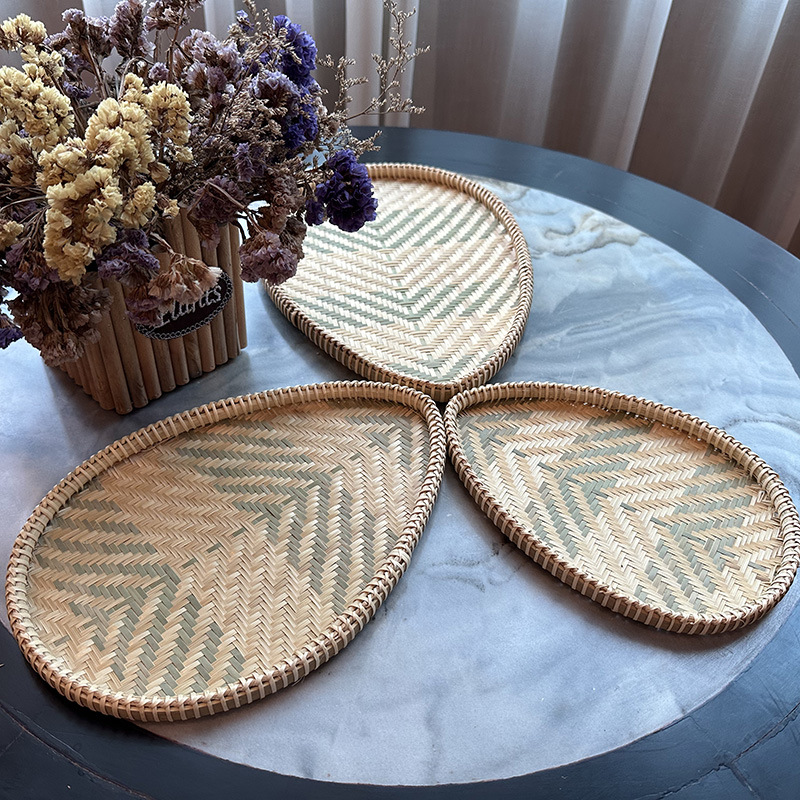 Handmade Bamboo Woven Products Bamboo Woven Snack Snack Tray Bread Pastry Melon Seed Tray Flat Dustpan