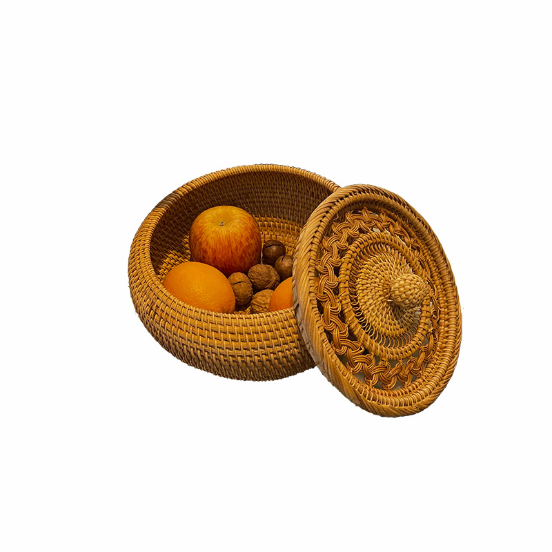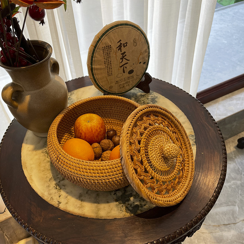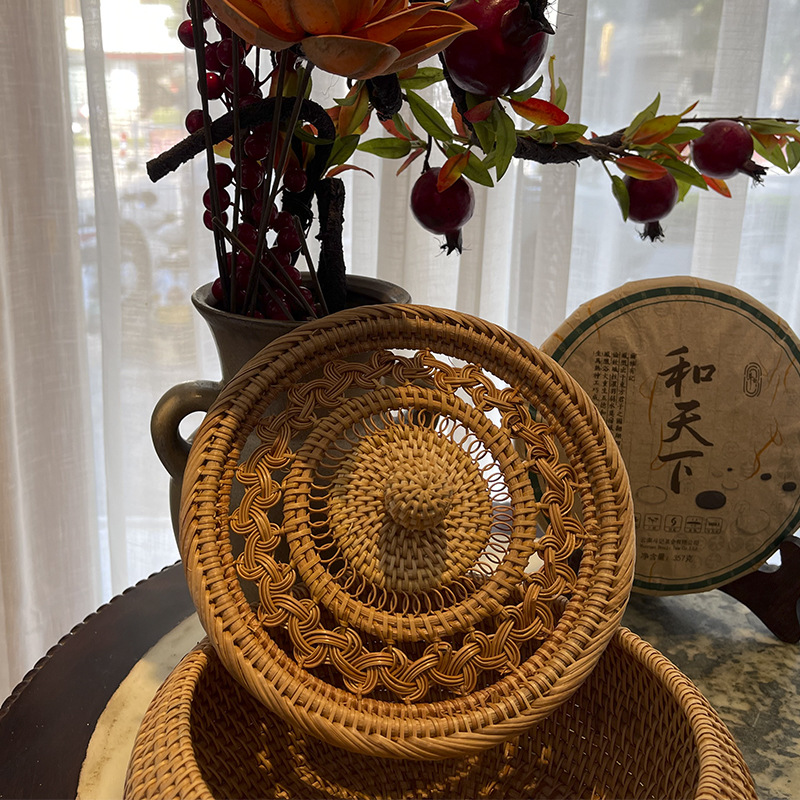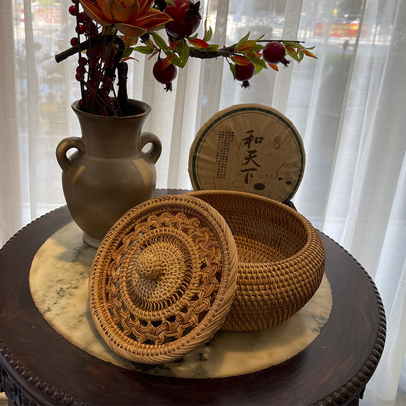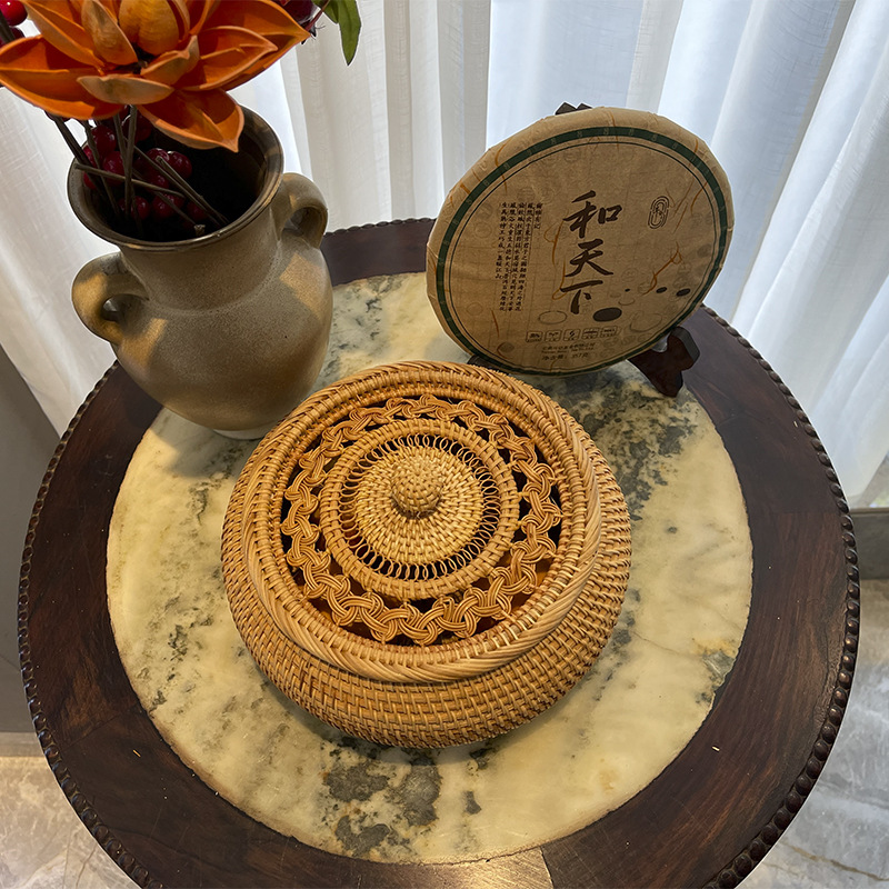 Hollow Braided Flower Lid Drum-shaped Rattan Jar Pu'er Tea Box Rattan Storage Jar Rattan Loose Tea Tuo Tea Tea Jar
