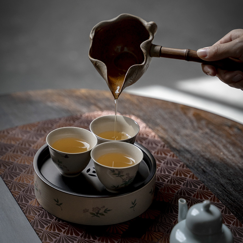 Rough Pottery Lotus Side Handle Fair Cup Ceramic Retro Even Cup Kung Fu Tea Set Tea Ceremony Accessories Household Tea Sea Tea Divider