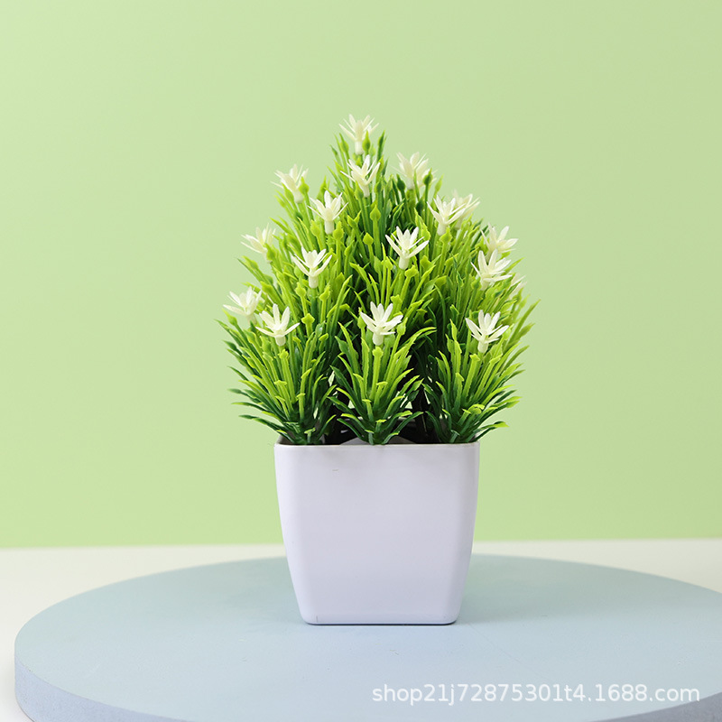 Simulated Flowers,Fake Green Plants,Bonsai,Mini Snowflake Pine Floral Ornaments,Home Living Room Desktop,Small Potted Plant Decorations