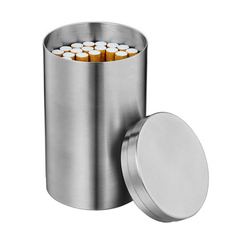 304 Stainless Steel Cigarette Case50 Creative Men's Cigarette Barrel Metal Large Capacity Car Ashtray Cotton Swab Storage Box