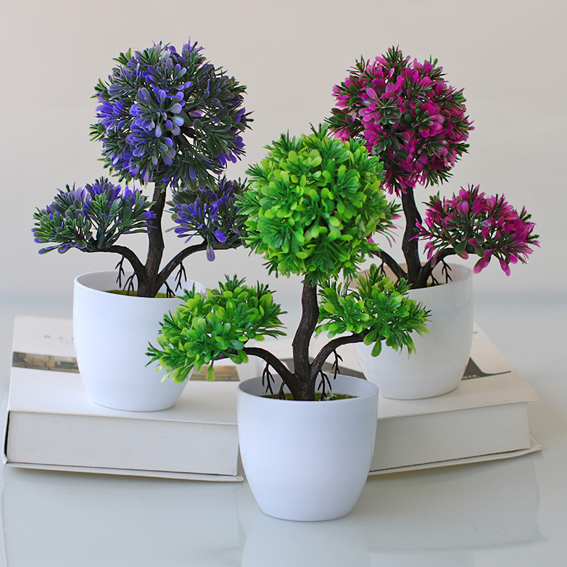 Simulated Fake Flower Potted Ornaments Fake Tree Small Welcoming Pine Plastic Bonsai Simulated Pine Indoor Green Plant Decoration