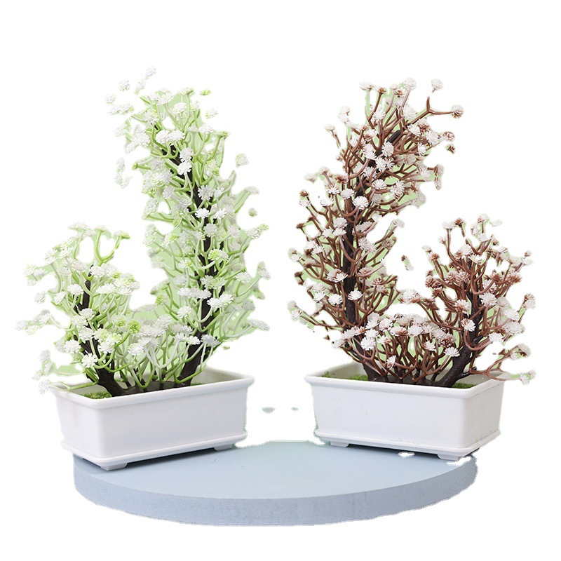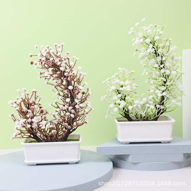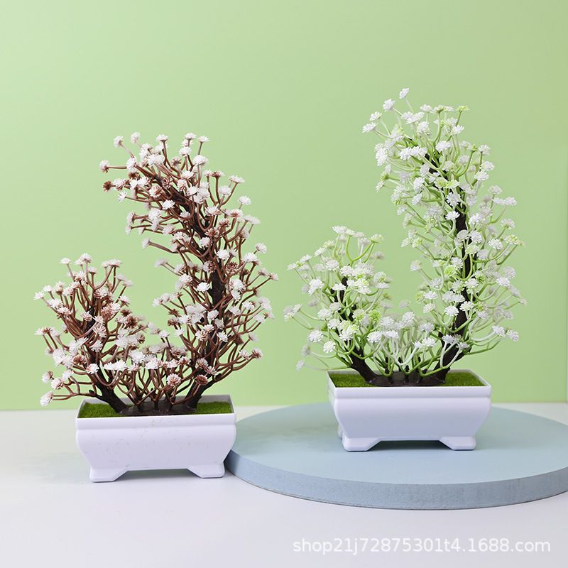 Simulated Green Plants,Small Bonsai Ornaments,Home Decorations,Desktop Dining Table Decorations,Plastic Flower Gypsophila Set