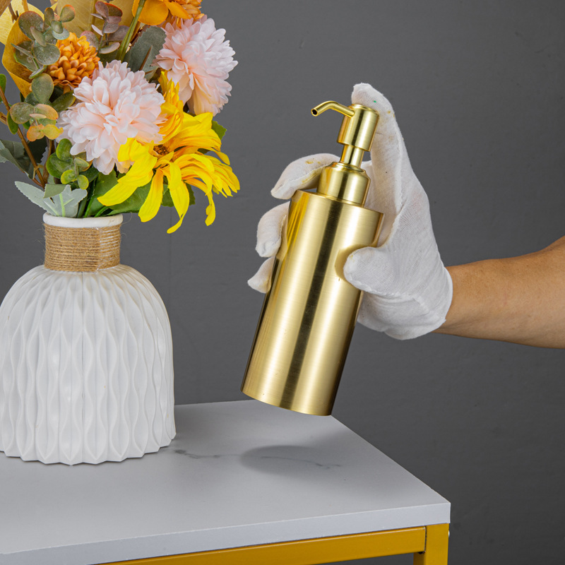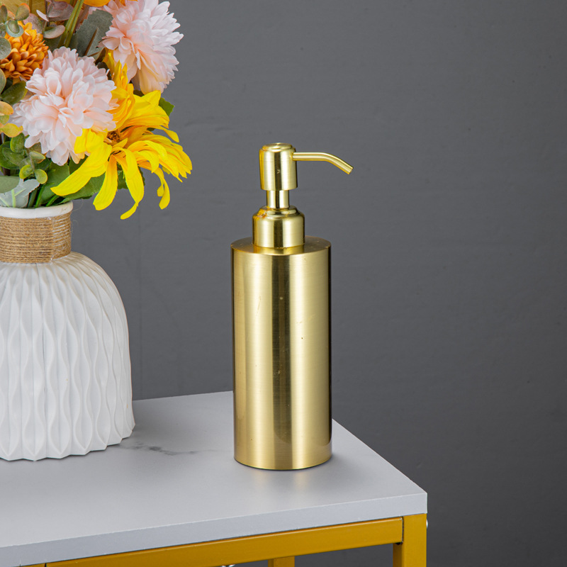 304 Stainless Steel Hand Sanitizer Bottle Golden Soap Dispenser Detergent Dispenser Push Type Round Bathroom Lotion Dispenser