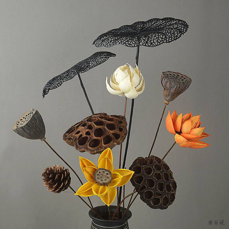 Zen Pine Cone Dried Lotus Lotus Lotus Real Flower Air-dried Natural Dried Flower Cotton Photo Small Bouquet Decorative Ornaments