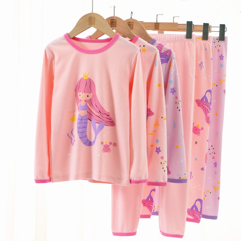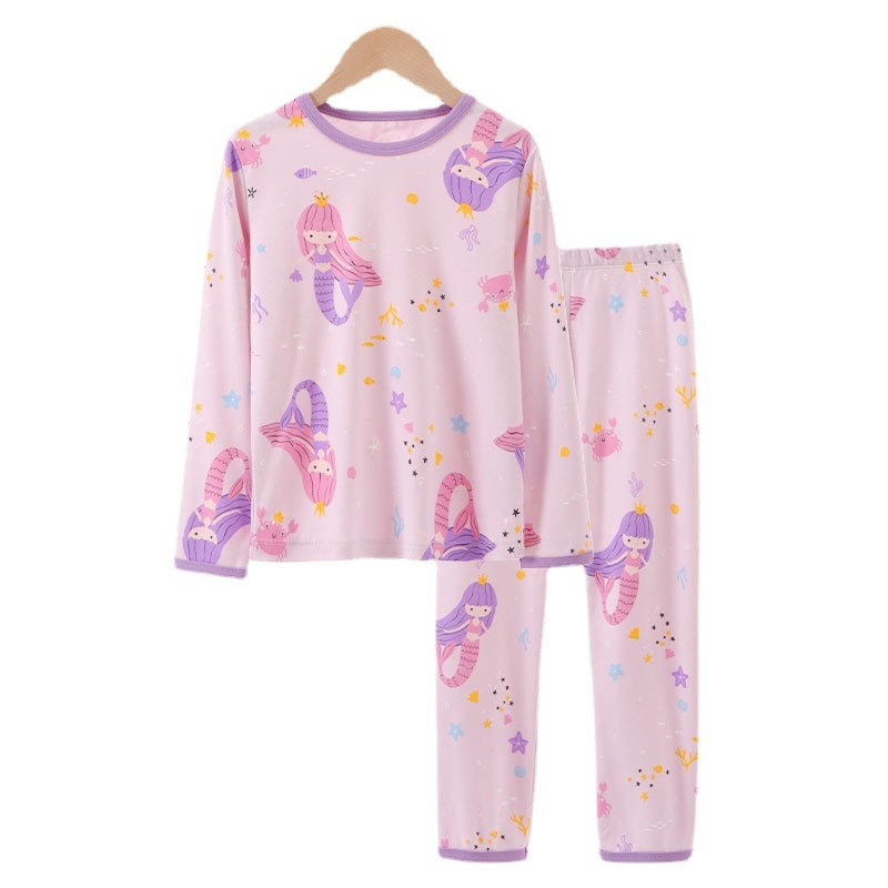 Children's Underwear Set Cotton Girls Cartoon Mermaid Cotton Wool Autumn Clothes Autumn Pants Set Older Children's Air Conditioning Clothes On Behalf Of
